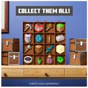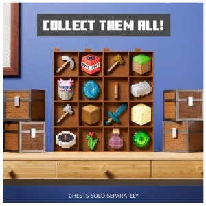 This Minecraft Inventory Chest from Series One: Biome Discoveries explores the Plains biome and features Wooden Axe, Grass Block, Torch & Iron Ingot. Collect them
