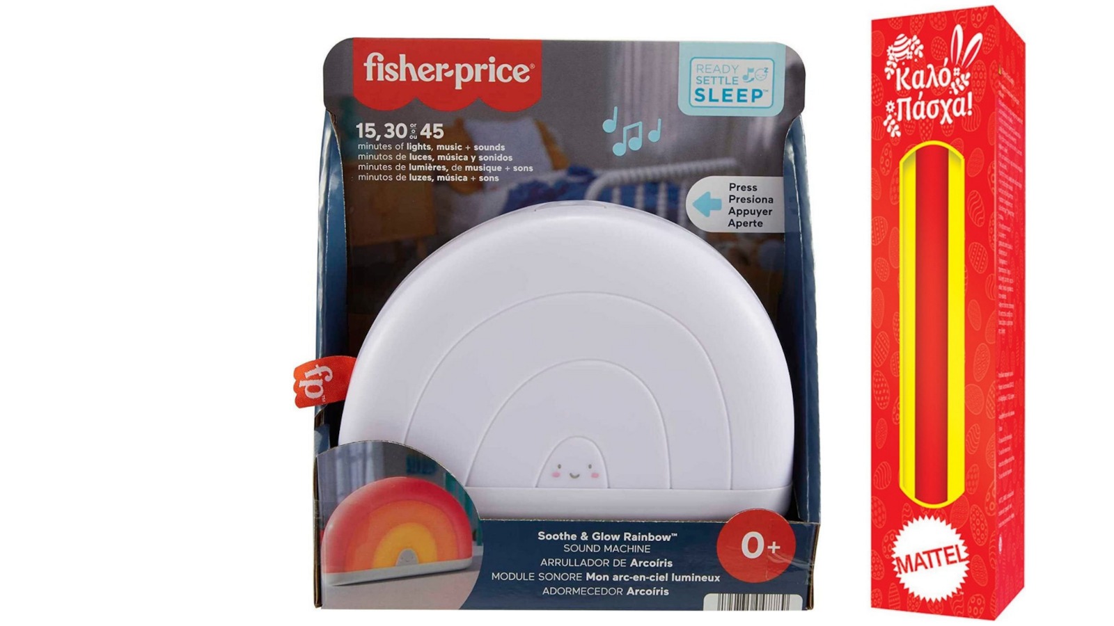 Fisher Price Rainbow Glow Μουσικό Κουτί (HGB91). Το Soothe & Glow Rainbow™ Sound Machine από τη Fisher-Price® είναι ένα κομψό ηχητικό μηχάνημα για το παιδικό σας δωμάτιο με ζεστά χρώματα και απαλά φωτεινά μοτίβα που βοηθούν στην ηρεμία και τη χαλάρωση του μωρού σας. Επιλέξτε 15, 30 ή 45 λεπτά χαλαρωτικών ήχων της φύσης, λευκό θόρυβο ή την ειδικά σχεδιασμένη λίστα αναπαραγωγής Ready, Settle, Sleep™, για να χαλαρώσετε το μικρό σας. Επιπλέον, μπορείτε να ρυθμίσετε την ένταση του ήχου σε υψηλή, χαμηλή ή σίγαση για χαλάρωση μόνο με τα φώτα.