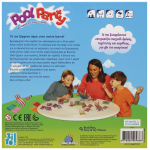 Βρισκόμαστε στην καρδιά του καλοκαιριού και ο ήλιος καίει! Κάνει πολλή πολλή ζέστη! Τι καλύτερο από ένα πάρτι στην πισίνα για να δροσιστείτε και να γιορτάσετε την εποχή της ξεγνοιασιάς; Αλλά γίνεται πάρτι στην πισίνα χωρίς διαγωνισμό με βουτιές; Όλοι ξέρουν τους κανόνες, δηλαδή ότι κερδίζει η βουτιά που θα δημιουργήσει τον μεγαλύτερο παφλασμό, όμως αυτή η μικρή πισίνα δε φτάνει για ένα τόσο μεγάλο πάρτι! Βεβαιωθείτε ότι οι κολυμβητές της ομάδας σας κάνουν τις καλύτερες βουτιές για να εντυπωσιάσουν τους κριτές, προτού η πισίνα ξεχειλίσει ή αναποδογυρίσει, γιατί τότε θα πρέπει όλοι να βγουν έξω!Το πιο ξεκαρδιστικό επιτραπέζιο παιχνίδι δράσης, ταχύτητας και ακρίβειας, για όλη την οικογένεια!Περιεχόμενα: 1 πισίνα (βάση, ελατήριο, μπολ), 36 κολυμβητές (4 ομάδες των 9 κολυμβητών), 1 βιβλίο κανόνων στα ελληνικά.