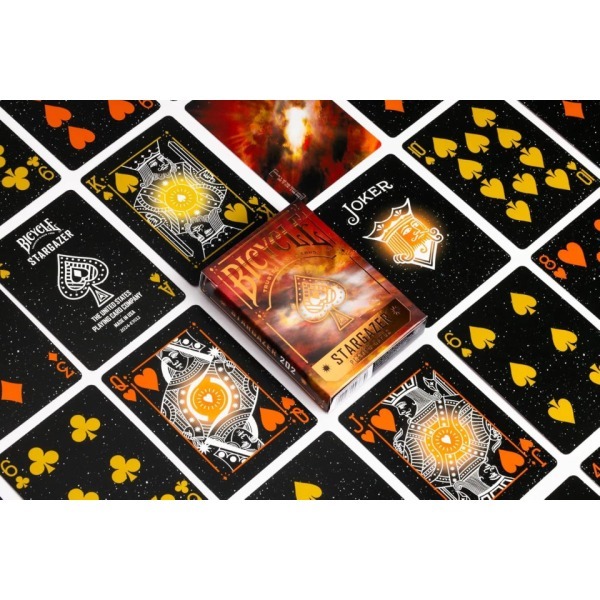 Η επίσημη πλαστικοποιημένη τράπουλα BICYCLE Stargazer 202 εντυπωσιάζει με τον κοσμικό της σχεδιασμό, εμπνευσμένο από τα αστέρια και το διάστημα. Κατασκευασμένη στις ΗΠΑ, προσφέρει υψηλή ανθεκτικότητα, ομαλή αίσθηση και εύκολο ανακάτεμα, αποτελώντας ιδανική επιλογή για παιχνίδια, μαγικά κόλπα ή συλλογή.