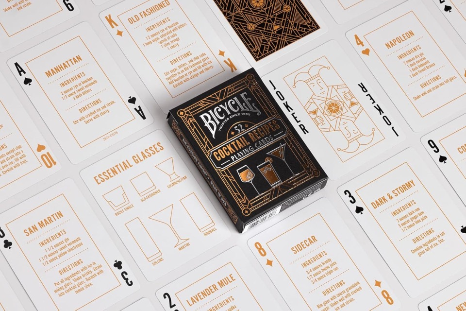 Η επίσημη πλαστικοποιημένη τράπουλα BICYCLE Cocktail ξεχωρίζει με μοναδικό σχέδιο εμπνευσμένο από κοκτέιλ και μπαρ. Κατασκευασμένη στις ΗΠΑ, προσφέρει υψηλή ανθεκτικότητα, ομαλή αίσθηση και εύκολο ανακάτεμα, καθιστώντας την ιδανική για παιχνίδια, μαγικά κόλπα ή συλλογή.