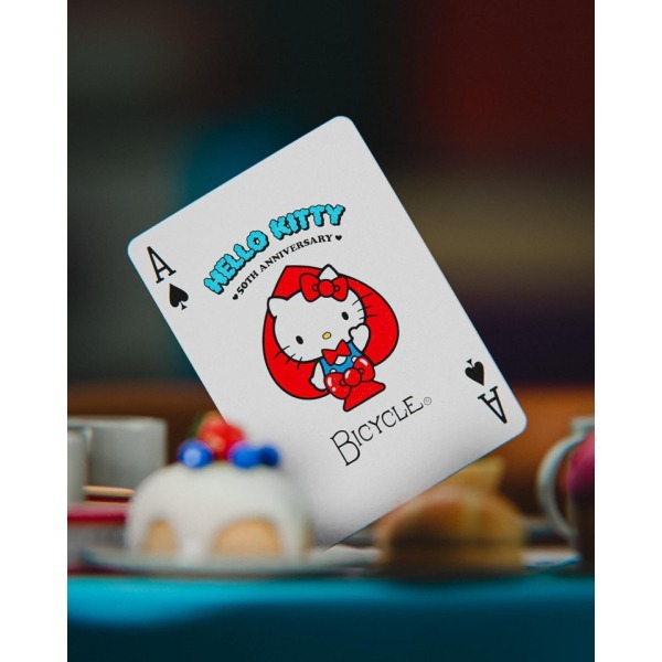 Η επίσημη πλαστικοποιημένη τράπουλα BICYCLE Hello Kitty 50th Anniversary γιορτάζει τα 50 χρόνια της αγαπημένης Hello Kitty με συλλεκτικό σχέδιο. Κατασκευασμένη στις ΗΠΑ, προσφέρει υψηλή ανθεκτικότητα, ομαλή αίσθηση και εύκολο ανακάτεμα, καθιστώντας την ιδανική για παιχνίδια, μαγικά κόλπα ή συλλογή.
