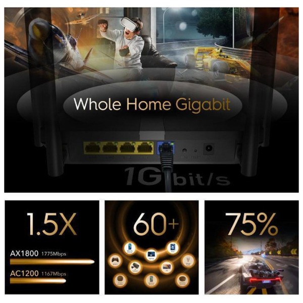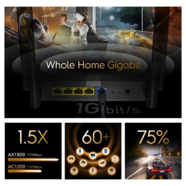 Cudy WR1500 Wi-Fi 6 Gigabit Router AX1500 Black