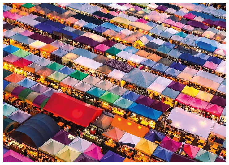 Overlook the gorgeous markets of Bangkok, Thailand in this 1000 piece puzzle. Originally commissioned for Hong Kong airlines, this breath-taking ariel image was photographed and edited by the talented Lisheng Chang. Thai Market is part of our range of design-led jigsaw puzzles especially for adults. With the recent wave of young adults wanting to take a ‘digital detox’ from using their devices that can sometimes take over everyday life, puzzling is becoming a popular pastime as it is an excellent way to relieve stress and focus on the present moment. The White Logo Collection is perfect for the new wave of puzzlers who are looking for more contemporary designs rather than traditional puzzle scenes. As with all Gibsons jigsaws, we use 100% recycled puzzle board, FSC paper and work with the best artists from all around the world. The beautifully illustrated pieces are designed to fit perfectly together; in fact, we use the thickest puzzle board on the market. Everyone loves a Gibsons jigsaw, even Her Majesty the Queen has been spotted with one. We’ve made some positive changes to our processes, so you can be sure you’re getting the same great puzzles and know they are kinder to the environment. Not only does the box have a fresh new look, but we’ve used biodegradable clear labels to secure the lid instead of shrink wrap, reducing our plastic waste. We use vegetable-based inks too. The gloss coating on the box gives extra protection and the puzzle pieces are stored in a plastic bag that can be recycled by most councils. Because the box is slightly smaller than our previous designs, we need less room to transport our products which reduces our carbon footprint and means you can store your puzzles more easily. We have also popped an artwork poster inside for you to reference whilst you piece together your lovely jigsaw puzzle. Puzzle dimensions: 68x49cm