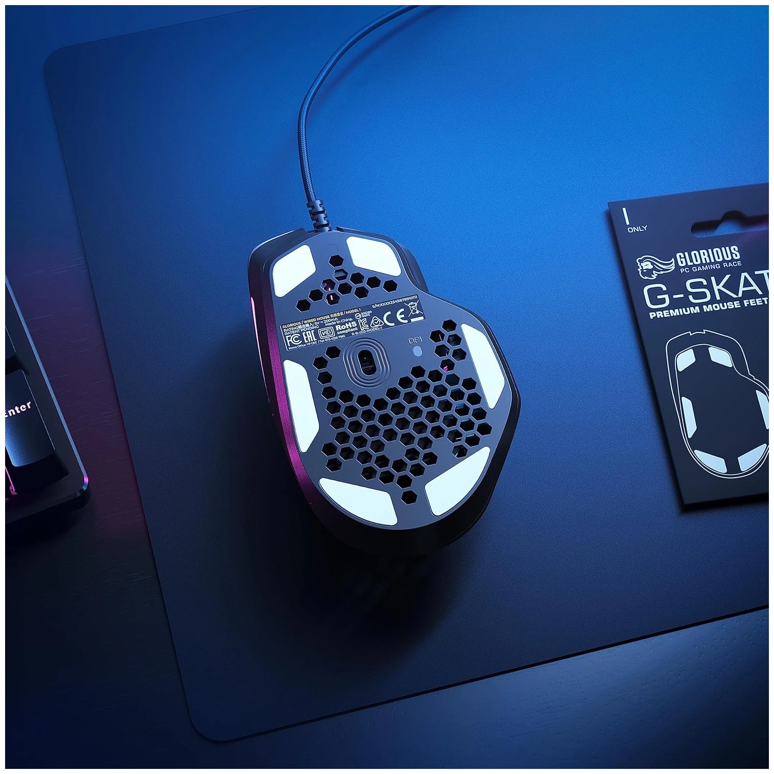 Replacement high-performance feet for Glorious gaming mice. Made of 100% PTFE. Compatibility – These mouse skates, also known as mouse feet, fit ONLY the Model I and I 2 models by Glorious Gaming Function: The feet allow the mouse to glide with super-smooth control and optimal speed. Perfect for FPS, MMO, and MOBA players. How to Install: Gently remove the existing stock skates, peal adhesive of G-Skates, and carefully apply them on the mouse. Size: 0.81mm thickness. Does not significantly increase the light weight of the mouse. Premium Material: 100% pure virgin PTFE material. Pre-cut material is easy to install.