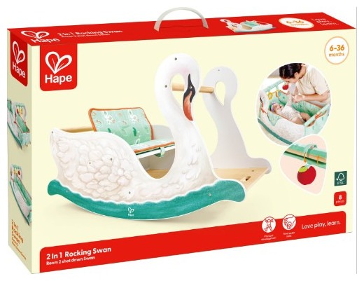 Experience the perfect blend of playtime and soothing comfort with Hape’s 2-in-1 Baby Gym and Rocking Swan Chair. Delightful entertainment meets relaxation for your child.