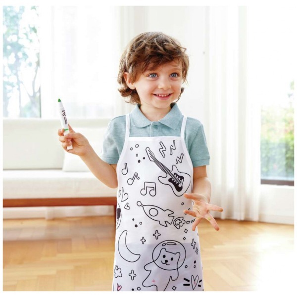 Colour Me Art Apron Design it yourself with Hape’s art apron. You can colour and create your very own masterpiece apron to use over and over again when it’s time get creative. Product code: E2014