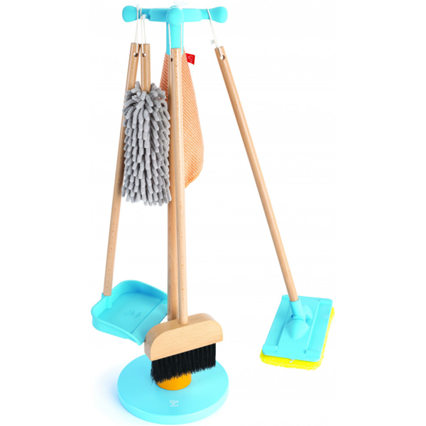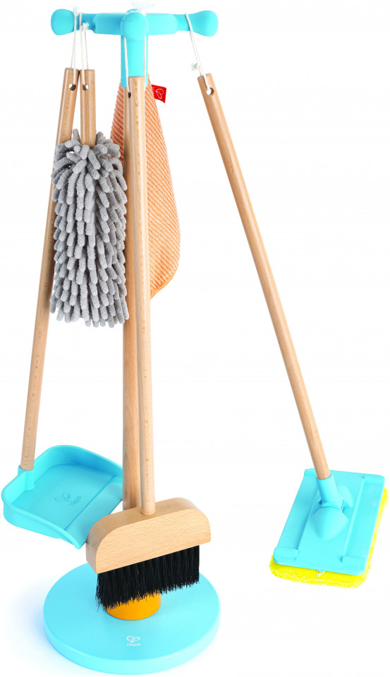 Με αυτό το υπέροχο σετ, το καθάρισμα είναι πολύ διασκεδαστικό! Το σετ περιλαμβάνει μια σκούπα, μια σφουγγαρίστρα δαπέδου, ένα ξεσκονιστήρι, ένα ξεσκονόπανο και ένα πανί καθαρισμού. Όλα τα μέρη μπορούν να κρεμαστούν στη βάση που περιλαμβάνεται. Αυτό το σετ περιέχει όλα όσα χρειάζονται τα μικρά παιδιά ως σκληρά εργαζόμενοι βοηθοί καθαρισμού. Συνοδεύεται από σκούπα, σφουγγαρίστρα δαπέδου, ξεσκονιστήρι, ξεσκονόπανο, πανί καθαρισμού και κρεμαστή βάση. Ιδανικό εκπαιδευτικό παιχνίδι που προάγει την λεπτή κινητική ανάπτυξη και βελτιώνει τις γλωσσικές και κοινωνικές δεξιότητες. Το σετ ενθαρρύνει το παιχνίδι μίμησης στα παιδιά και τα παρακινεί να διατηρήσουν το δωμάτιό τους τακτοποιημένο και καθαρό. Κατάλληλο για ηλικίες 3 ετών και άνω.