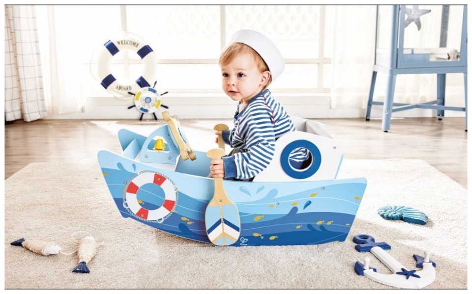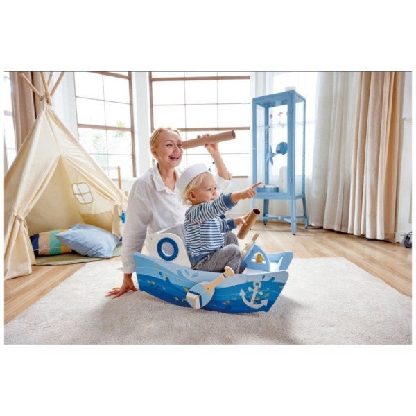 Σαλπάρετε σε ατελείωτες ευφάνταστες περιπέτειες με το διαδραστικό μας σκάφος παιχνιδιών. Προσποιηθείτε ότι ταξιδεύετε σε μια περιπέτεια στην ανοιχτή θάλασσα, εξερευνάτε αχαρτογράφητες περιοχές ή ακόμα και ότι είστε πειρατές σε ένα κυνήγι θησαυρού! Διαθέτει κουπιά, τιμόνι και γάντζο για μια μαγευτική εμπειρία παιχνιδιού. ΥΠΟΣΤΗΡΙΖΕΙ ΤΙΣ ΚΙΝΗΤΙΚΕΣ ΤΟΥΣ ΔΕΞΙΟΤΗΤΕΣ: Με την κωπηλασία και το τιμόνι, τα παιδιά μπορούν να αναπτύξουν τις λεπτές και αδρές κινητικές τους δεξιότητες.ΡΕΑΛΙΣΤΙΚΟΙ ΗΧΟΙ: Όταν στρίβετε το τιμόνι, χτυπάει ακριβώς όπως το πραγματικό, καθώς και το κουδούνι.ΔΟΝΗΤΟ ΣΧΕΔΙΟ: Το σκάφος είναι διακοσμημένο με ζωηρά μπλε γραφικά για να ενθαρρύνει τη φαντασία και τη δημιουργικότητα του παιδιού σας καθώς παίζει.