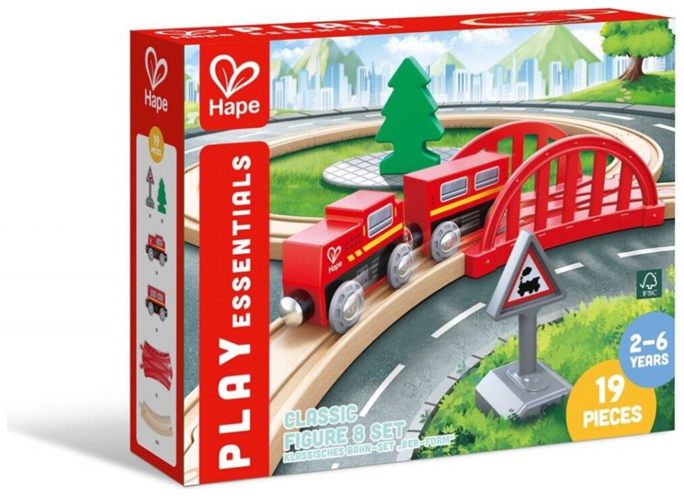 Hape Railway Ξύλινο Classic Figure 8 Τρένο Set . Ένα κλασσικό αγαπημένο για γενιές! Η απλή φιγούρα 8 είναι κατασκευασμένη από ράγες που είναι έυκολο να φτιάξεις και να ενώσεις με την γέφυρα για να κινούνται τα βαγόνια σου με πολλούς τρόπους.