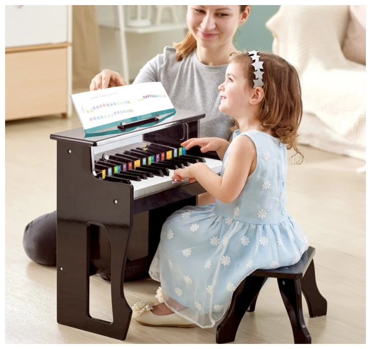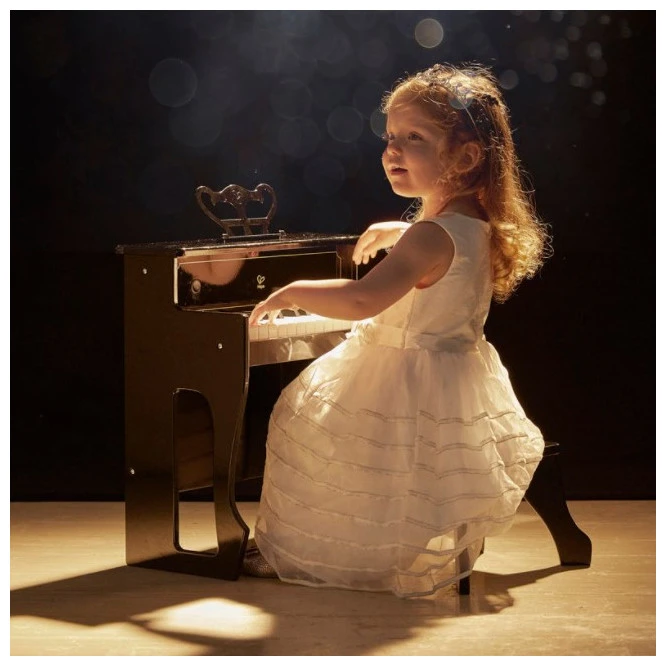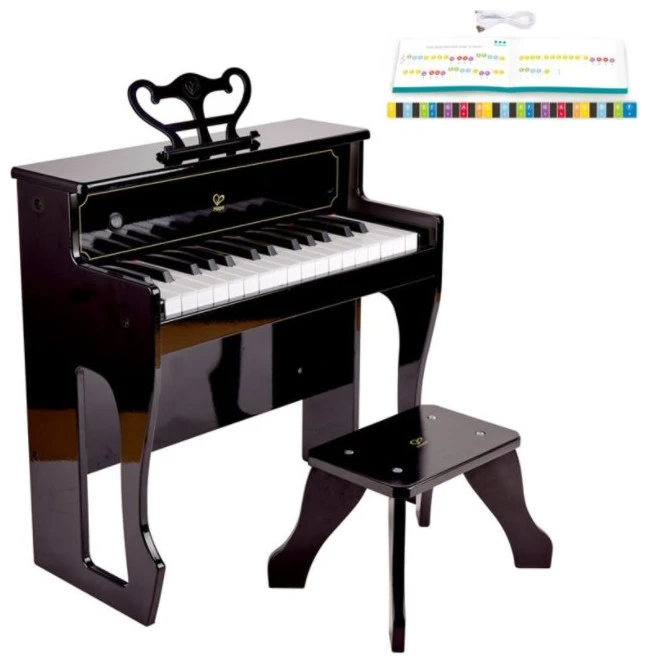 This 30-key dynamic upright electric piano allows your child to give their best performance. Piano’s wooden shell absorbs harmonics and provides great accoustics. Great for encouraging creativity and the perfect preparation for advanced musical learning. The perfect way to build confidence in children. Age: 3 years and up Model no: E0631 Product Dimensions: Approx 47 x 49 x 24 cms Package Dimensions: Approx 56 x 48 x 31 cms Number of Pieces: 4 Music book, pitch strip and cable included. Plug-in and battery power supply mode. 30 keys 1:2 scale with realistic piano actions create acoustic sound output. Classic contours made with sold wood. Requires 4 x AA batteries (not included)