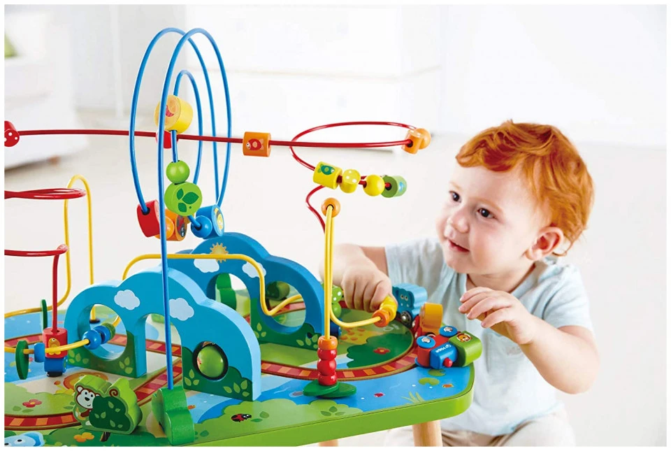 Set up the table as on the box.Explore the features above the track. The bead maze has colourful ladybird and butterfly blocks.Made with a commitment to sustainability.Compliant with international safety and quality standardsNot suitable for children under 18 months.