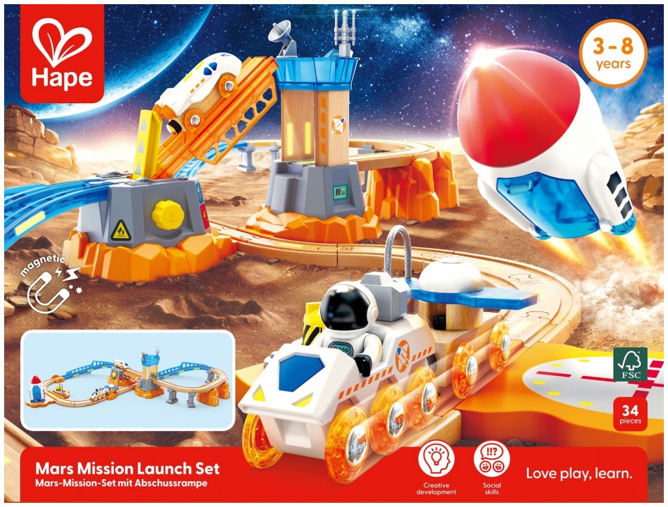 Ανακαλύψτε τον κόσμο του διαστήματος με το σετ εκτόξευσης Mars Mission! Συνδυάζει την κλασική σιδηροδρομική εμπειρία με την εκτόξευση διαστημικών πυραύλων. Το παιδί σας θα εξερευνήσει τόσο τις ράγες όσο και το διάστημα, μετατρέποντας το παιχνίδι σε μια εξαιρετική περιπέτεια. Αυτό το σετ περιλαμβάνει στοιχεία που φωσφορίζουν στο σκοτάδι, κάνοντάς το πιο διασκεδαστικό και ενδιαφέρον για τη μάθηση σχετικά με το διάστημα.