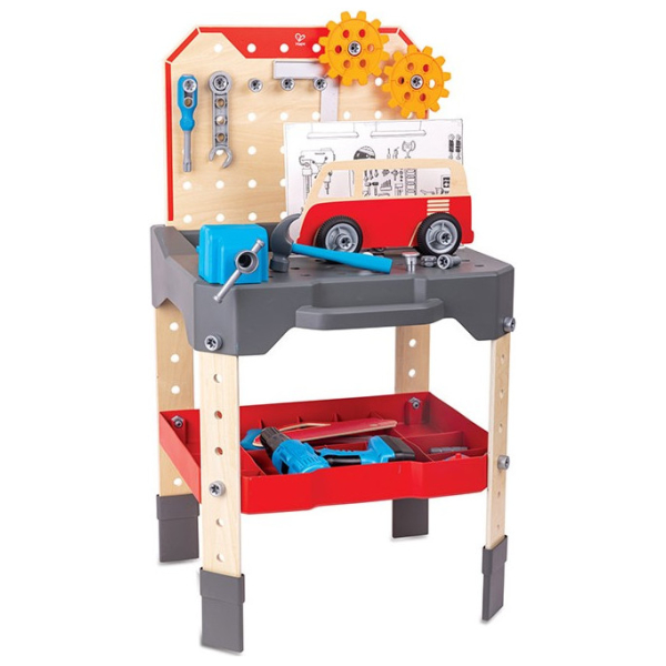 Have a constructive day`s play with this fantastic workbench, complete with tools! Includes loads of tools to build with and one bench which actually turns into a storage box!