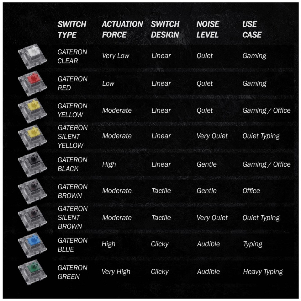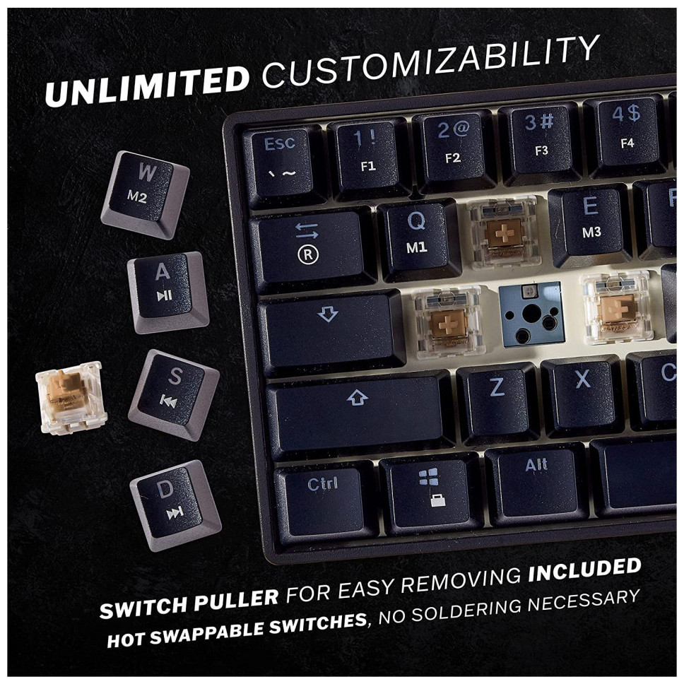 FULL RGB BACKLIT GAMING KEYBOARD 16,8 εκατομμύρια συνδυασμοί χρωμάτων, ρυθμιζόμενα επίπεδα φωτεινότητας και πολλαπλά διαφορετικά εφέ φωτισμού. Plug & Play, δεν χρειάζονται προγράμματα οδήγησης. ΜΗΧΑΝΙΚΌΙ ΔΙΑΚΟΠΤΕΣ GATERON Ο εξαιρετικά γρήγορος χρόνος απόκρισης καθιστούν αυτούς την καλύτερη επιλογή για να αποκτήσετε πλεονέκτημα στο gaming. Εναλλάσσεται εν θερμώ με άλλους διακόπτες. Δεν απαιτείται συγκόλληση ή αποκόλληση. Εξαιρετικά ανθεκτικοί διακόπτες. FULLY PROGRAMMABLEΕγγραφή μακροεντολών, προηγμένα εφέ φωτισμού και προσαρμογές μέσω λογισμικού. Διαθέτει πλήκτρα πολυμέσων μέσω πολλαπλών επιπέδων. Full Anti Ghosting Mode n-key Rollover (NKRO) για ιδανικές εμπειρίες gaming FPS, MOBA και MMO. PRACTICAL FEATURESSmall form factor mini 60% Layout με 61 πλήκτρα με ατομικό οπίσθιο φωτισμό. Ανθεκτικό σε διαρροές και σκόνη για να αντέχει σε τυχαίες διαρροές κατά το παιχνίδι. Εναλλάξιμα πλήκτρα ABS Doubleshot που μπορούν να αλλάξουν με το παρεχόμενο κλειδί. ΣΥΜΒΑΤΟΤΗΤΑ ΜΕ MAC & WINDOWS Συμβατό με Windows 11, Win 10, Win 8, Win 7, Win Vista, Windows XP και Mac OS. Το Ideal Keyboard for All Environments λειτουργεί με όλες τις επωνυμίες υπολογιστών ή φορητών υπολογιστών και υπολογιστών παιχνιδιών. Συμβατό για χρήση στο σπίτι και στο γραφείο. Περιλαμβάνεται αποσπώμενο καλώδιο USB C σε Type-A και Keycap puller Διακόπτης: Gateron Mechanical Brown Χρώμα: Μαύρο