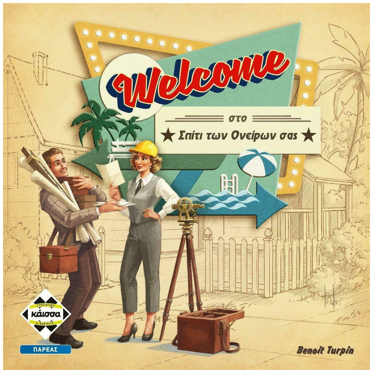 Σε αυτό το παιχνίδι, είστε Αμερικάνοι αρχιτέκτονες στη δεκαετία του 50, κατά την περίοδο του περίφημου «Baby Boom». Όμως προσοχή στον ανταγωνισμό! Ποιος θα ολοκληρώσει με τον καλύτερο τρόπο τα σχέδια πόλης δημιουργώντας τις ωραιότερες συνοικίες στους τρεις δρόμους που του έχουν ανατεθεί, με πολυτελή πάρκα και εντυπωσιακές πισίνες; Το Welcome είναι ένα παιχνίδι όπου όλοι παίζουν ταυτόχρονα με τις ίδιες κάρτες. Έχει να κάνει με τον έξυπνο συνδυασμό των σπιτιών με τις αντίστοιχες ιδιότητες προκειμένου να γίνετε ο σπουδαιότερος αρχιτέκτονας του αύριο! Περιεχόμενα: 1 μπλοκ βαθμολόγησης, 29 κάρτες σχεδίων πόλης, 81 κάρτες κατασκευών, 4 βοηθήματα παικτών, κανόνες