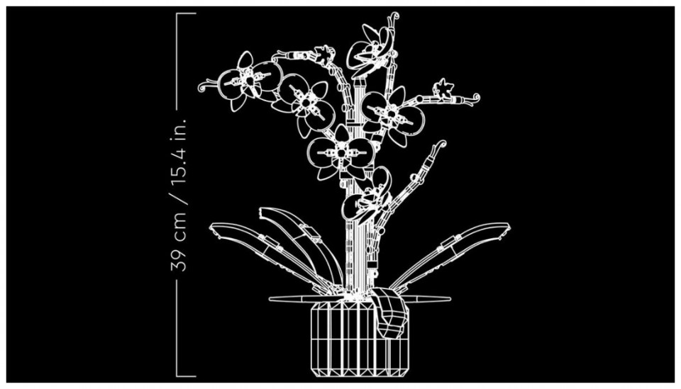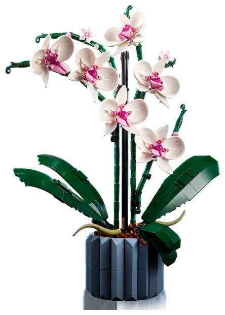Enjoy a mindful building project and create a beautiful plant display for your home with this LEGO® Orchid (10311) model building project for adults. Take your time crafting all the details of the white and pink flowers and the vase. Inspired by a real orchid, the model has 5 leaves at the base and 2 wandering air roots to create an authentic display. Build the blue fluted vase and fill it with the brown LEGO elements to recreate the bark mix that a real orchid would grow in. Customize your displayPose your orchid in a variety of ways by rotating the stems, blooms, roots, and leaves of the model to achieve the perfect look. Or personalize your display by rebuilding the stems to create new combinations of flower arrangements. Building creativity, piece by pieceDiscover the space to be mindful and the time to relax with buildable models designed specifically for adults from the LEGO Botanical Collection. Build your own orchid – Enjoy a rewarding building project as you create a plant display to enhance your home or office decor with this LEGO® Orchid 10311 building kit Customize your display – Rotate the model’s stems, blooms, roots and leaves to create your preferred look, and rebuild the stems to create new combinations of flower arrangements Inspired by a real orchid – The LEGO® designers have worked carefully to create a model that looks as close as possible to the real thing, with amazing attention to detail Enjoy the build – Relax and take your time with this building project. Whether it’s a treat for you or a gift for a plant lover, this LEGO® Orchid set is designed specifically for adult builders From the LEGO® Botanical Collection – This is part of a collection of building sets inspired by real-life plants and flowers and designed specifically for adults Spot the repurposed LEGO® elements – Hidden throughout are LEGO elements inspired by other sets, like the minifigure shields and dinosaur tails used to create the sepals and roots Dimensions – This buildable model measures over 15 in. (39 cm) high, 11.5 in. (30 cm) wide and 9.5 in. (24 cm) deep A project for adults – The LEGO® Orchid is part of a range of building sets designed for adult building fans who love stunning design and intricate details Quality materials – LEGO® building bricks are manufactured from high-quality materials. They’re consistent, compatible and connect and pull apart easily every time: it’s been that way since 1958 Safety ensured – With LEGO® pieces, safety and quality come first. That’s why they’re rigorously tested so you can be sure that this collectible orchid model is robust