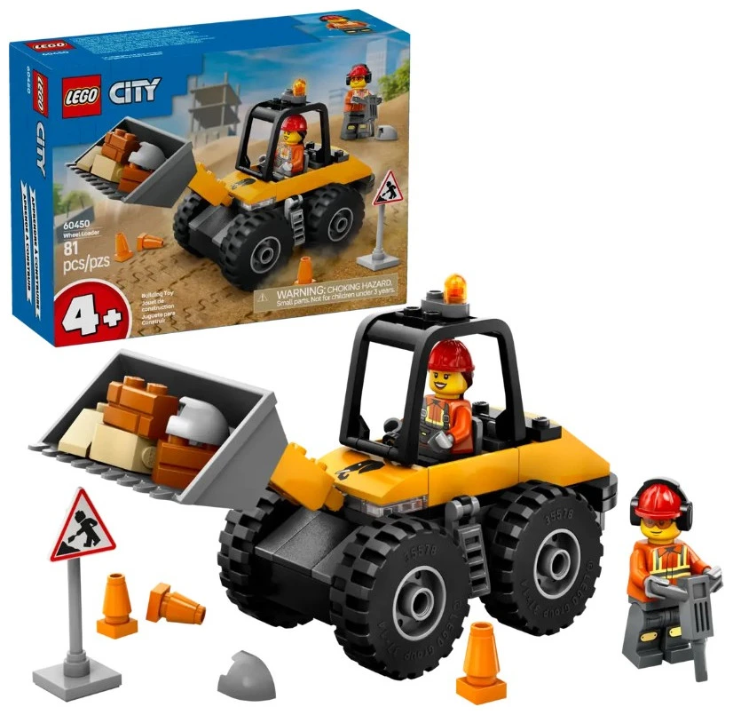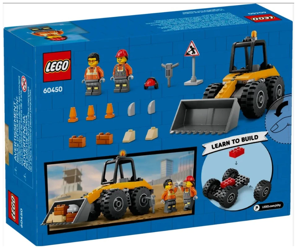 Introduce your child to the exciting world of building with the LEGO® City Yellow Construction Wheel Loader vehicle set (60450). This digger toy for kids aged 4 and up features a large loader bucket and big tires for navigating rough terrain. The set also includes a roadwork sign, traffic cones and a toy jackhammer, and it comes with driver and worker minifigures for imaginative role play and storytelling. This easy-build construction vehicle playset includes a LEGO Starter Brick element, a pictorial guide and 3D instructions in the LEGO Builder app – a digital building companion with zoom and rotate tools that enable kids to visualize models from all angles as they build. LEGO City sets come with cool toy vehicles, realistic structures and fun characters that inspire imaginative play without limits. Kids can add this LEGO construction vehicle to other sets (sold separately) from the LEGO City range to expand the world of play possibilities. Toy construction vehicle set for ages 4 and up – Surprise your budding builder with the LEGO® City Yellow Construction Wheel Loader toy playset for fans of construction vehicles What’s in the box? – This construction site toy includes a buildable toy wheel loader, driver and worker minifigures, a roadwork sign, traffic cones and a toy jackhammer LEGO® toy construction vehicles for kids who love to play – Kids can set up the sign, use the cones to mark off the work area and use the machine’sbucket to scoop up the LEGO rubble Construction worker toy with a digital guide – Includes a LEGO® Starter Brick element, a simple pictorial building guide and 3D digital guidance in the LEGO Builder app A fun gift for kids – Give this LEGO® building toy as a gift or any-day surprise for kids aged 4 and up More sets to discover – Kids unleash more fun and adventures when they add this construction site set to others (sold separately) from the LEGO® City range A city without limits – LEGO® City is a place where kids can unleash their limitless imaginations, with structures, construction toys, vehicles and citizens that inspire them to create and explore Dimensions – The toy wheel loader in this 81-piece LEGO® City set measures over 3in. (8 cm) high, 6 in. (16 cm) long and 2.5 in. (6 cm) wide