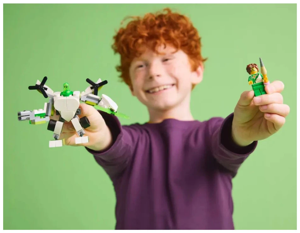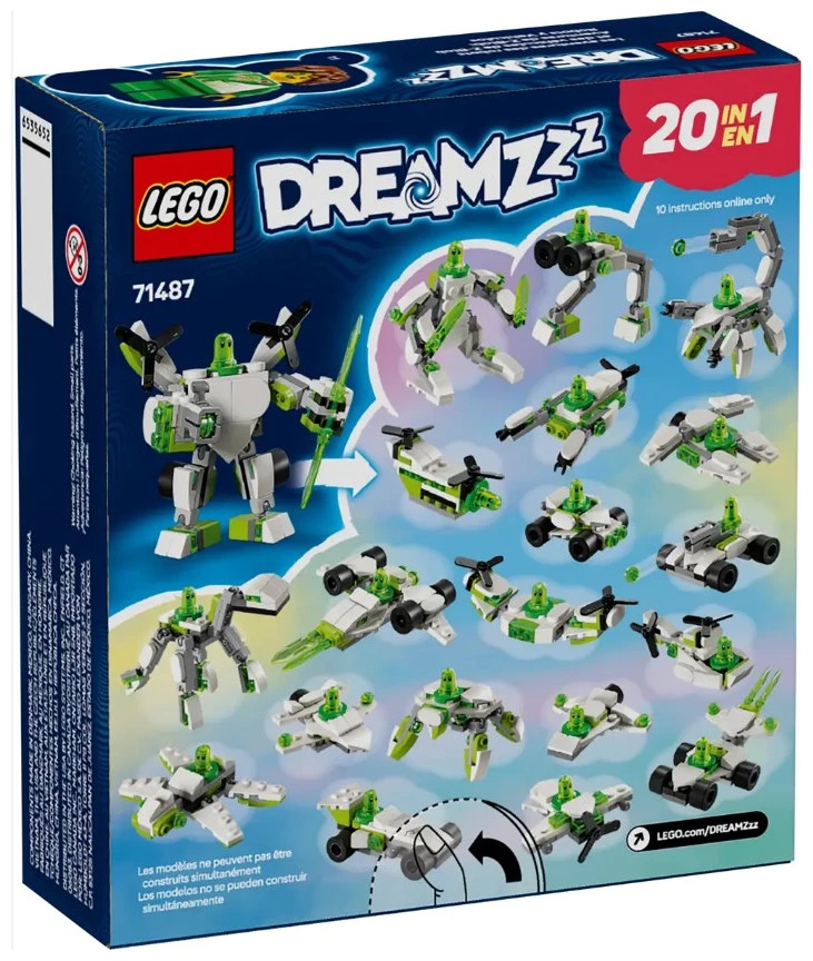 Ignite kids’ imaginations with this LEGO® DREAMZzz™ Z-Blob’s Robot and Vehicle Adventures (71487) building set for boys and girls aged 7 and up, which offers 20 awesome ways to build cool mech and vehicle toys. The main model is a Z-Blob mech robot toy, which young dreamers have fun building before discovering its 19 awesome rebuild options. Encouraging kids to build and rebuild an array of robot and vehicle toys, these options include a helicopter, race car, robot, turbo jet and scorpion. Awesome details include movable legs, arms, feet and wings, spinning propellers and a stud shooter. The set also includes a Mateo minifigure, who drives the action and fuels imaginative play. A cool gift for kids and fans of the LEGO DREAMZzz TV series, the mech and vehicle set includes story-led building instructions that let young dreamers immerse themselves in the action as they join Mateo and Z-Blob on this thrilling adventure. Mech toys – Drive kids’ creativity with the LEGO® DREAMZzz™ Z-Blob’s Robot and Vehicle Adventures building set for boys and girls aged 7 and up, which includes 20 building modes Rebuildable toy – The main build is a Z-Blob mech model, which young dreamers have fun creating before discovering the 19 alternative building modes, including a stunt plane, drone, helicopter and jet Also includes – Robot, turbo jet, jet, helicopter, space fighter, space shuttle, drag racer, electric tank, RC car, go-kart, submarine, turtlebot, two-legged robot, walker, scorpion and spider walker Loaded with details – Includes movable legs, arms, feet and wings, spinning propellers and a stud shooter LEGO® minifigure – The set includes LEGO DREAMZzz™ hero Mateo, who comes with a pencil accessory and encourages imaginative play Gift idea for kids – Give this fantasy playset as a gift or treat toy for boys and girls who love the LEGO® DREAMZzz™ TV series or robot and vehicle toys Be part of the action –The set includes story-led building instructions that encourage kids to immerse themselves in the dream world adventure Dimensions – The set includes 121 pieces and the main robot figure measures over 3.5 in. (8 cm) high, 3.5 in. (10 cm) wide and2.5 in. (6 cm) deep