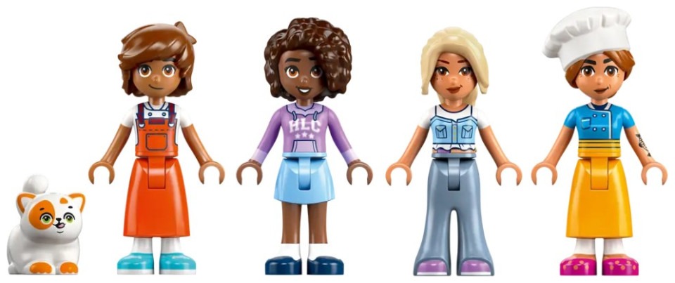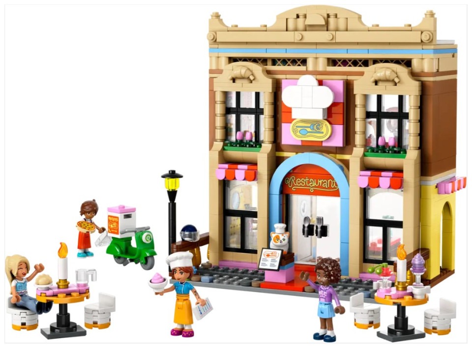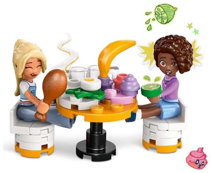 Turn kids’ pretend play into a gourmet adventure, as girls and boys aged 8 and up invent tasty dishes at the LEGO® Friends Restaurant and Cooking School (42655). This detailed role-play toy features a 2-story building with a cookery school kitchen and an outdoor dining area, plus 4 mini-dolls and a cat figure. The set makes a great birthday gift for kids who enjoy creative play. Your little chef can help Leo and Chef Marta as they develop new recipes for the customers to try. The toy restaurant and cooking school comes with lots of ingredient accessories for kids to combine as they create their own dishes, plus a cooking station with kitchen accessories. At opening time, Churro the cat wears a chef’s hat and greets customers. Leo takes orders and serves the diners. Will they enjoy the food? Sara and Aliya have alternate faces to show their reaction as they test out the dishes. Other details include the restaurant’s cleanup room, a customer restroom and a scooter for making deliveries.v Pretend play for creative chefs – This Restaurant and Cooking School role-play toy for kids aged 8 and up comes with lots of toy food pieces, 4 mini-dolls, a cat figure and a scooter toy Invent new dishes – This toy restaurant set inspires hours of cooking school storytelling and comes with toy ingredients for kids to combine as they create their own recipes for customers to try Includes 4 mini-dolls and a cat figure – Aliya and Sara come with alternate faces so kids can make their expressions change when they try the food A building kit with lots of accessories – Restaurant-themed elements include menu cards, an oven, a notepad, cheese grater, blender, mixer, piping bag, saltshaker, pepper shaker, a broom and more A birthday gift for kids – This set makes a fun birthday gift or anytime treat for kids who enjoy pretend play, cooking and friendship stories Online show – Inspire more creative-play ideas with other sets (sold separately) and the LEGO® Friends: The Next Chapter online show, where kids can get to know the characters of Heartlake City Measurements – 896-piece set with a main model measuring over 7.5 in. (20 cm) high, 7.5 in. (19 cm) wide and 5.5 in. (14 cm) deep