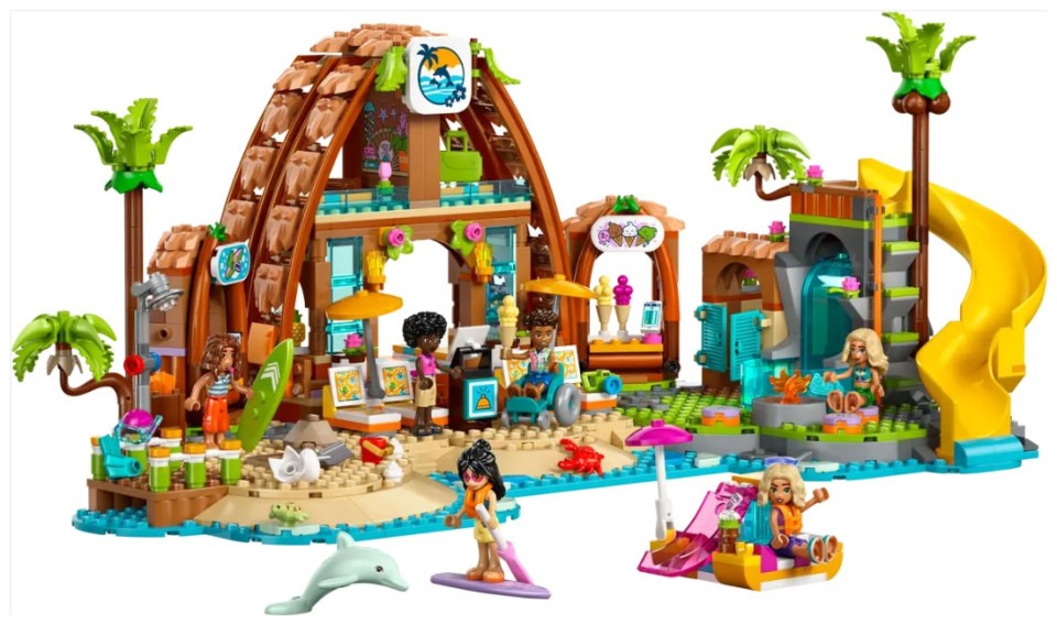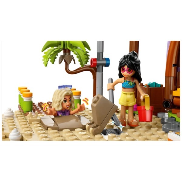 Enjoy family fun, vacation style with this action-packed kids’ building set toy for girls and boys aged 8 years old and up. The LEGO® Friends Family Vacation Beach Resort (42673) is full of stories and includes 6 LEGO Friends minidolls, a dolphin and a turtle figure, plus accessories for creative play. Build the resort, then create exciting adventures with the many beach activities and watersports packed inside. Find a coin using the metal detector accessory, then bury a character in the sand for classic beach family fun! Explore the rental shop with its fins, snorkels and surfboards. Find the turtle’s hidden cave, then try out the slide or visit the ice cream stand before relaxing by the firepit. The storytelling continues inside where there’s a bedroom and bathroom. Discover more creative toys (sold separately) in the LEGO Friends universe. Build Together with friends and family – the LEGO Builder app offers a fun and collaborative experience when building this set. Family fun – This Family Vacation Beach Resort building set for girls, boys and kids aged 8 years old and up comes with 6 minidolls, a dolphin and a turtle figure, plus accessories for creative play A beach playset packed with stories – This action-packed model features a buildable paddleboat, beach scene and a resort with lots of details to inspire creative storytelling 6 minidolls and 2 sea animals – This pretend-play set tells the story of Nova as she takes a fun family vacation with her dad and sister, along with characters Liann, Aron and resort manager Mischa A creative toy with beach resort accessories – This LEGO® set comes with lots of accessories, including drinks, ice cream cones, surfboards, helmets, a shovel, camera, suitcase and a beach wheelchair A gift to inspire family fun – This LEGO® beach resort set makes a great gift for kids who enjoy days at the beach and would love to build a model alongside their friends and family Online show – Inspire more creative-play ideas with other sets (sold separately) and the LEGO® Friends: The Next Chapter online show, where kids can get to know the characters of Heartlake City Build Together with friends and family – The LEGO® Builder app offers a fun and collaborative experience where you can share the fun of LEGO building Measurements – 1,140-piece set with a main model measuring over 7 in. (18 cm) high, 18 in. (45 cm) wide and 9.5 in. (24 cm) deep