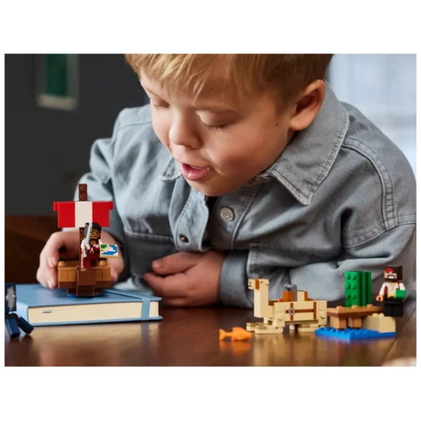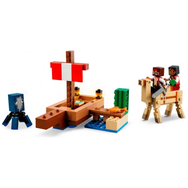 The Pirate Ship Voyage (21259) is a LEGO® Minecraft® pirate-figure adventure set that can be played with as a toy on its own or combined with other sets (sold separately) to create a bigger play experience. This kids’ pirate ship playset makes a versatile, hands-on video-game gift for Minecraft players and boys and girls aged 8 and up who like boat toys and building fun. This LEGO Minecraft pirate adventure set includes a buildable vehicle toy, plus a squid, camel, 2 pirate figures and accessories. Featuring pirates and a boat, and the first-ever appearance of an adult LEGO Minecraft camel, this special LEGO set will appeal to Minecraft fans. The camel’s 2-seat saddle has room for both pirates to ride to their next adventure. Accessories, including a fish, map, iron sword and a cactus help inspire imaginative play. The set combines easily with other LEGO Minecraft sets (sold separately) for even more play possibilities. Pirate building toy – Treat Minecraft® players to LEGO® Minecraft The Pirate Ship Voyage, a versatile, hands-on kids’ toy for boys and girls aged 8 and up Minecraft® playset with toy boat – This pirate ship toy is a buildable vehicle playset featuring a squid, camel, 2 pirate figures (a Swashbuckler and a Buccaneer), plus accessories Building adventure set – This pirate toy can be played with on its own or combined with other LEGO® Minecraft® sets (sold separately) to expand the fun Role-play toy – Accessories include a fish, map, iron sword and a cactus, which can be held by a pirate figure Gamer gift – Treat boys and girls who are fans of Minecraft®, pirates and LEGO® ship sets to this versatile building toy for kids Expand the fun – This set combines easily with other sets (sold separately) in the LEGO® Minecraft® range, giving kids even more ways to play Minecraft® made real – LEGO® Minecraft building toys for kids give players a different way to enjoy the game, with mobs,scenes and features brought to life with the hands-on creativity of LEGO bricks Big fun – The boat in this 166-piece set measures over 4 in. (10 cm) high, 5.5 in. (14 cm) long and 2 in. (5 cm) wide