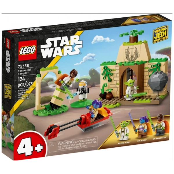 Give young kids aged 4 and over an awesome first experience of building and playing in the LEGO® Star Wars™ universe with this Tenoo Jedi Temple (75358) starter set. The temple has a ‘levitating’ rock function and detailed interior with lots of playful features. There is also a training droid and balance test for Jedi training, plus a speeder bike. A cool gift for Star Wars: Young Jedi Adventures fans, the set also includes new-for-June-2023 LEGO minifigures of Lys Solay and Kai Brightstar, plus a Master Yoda LEGO minifigure. Fun to buildThe simple pictorial instructions are perfect for children who are only just learning to read. For added digital fun, the LEGO Builder app features intuitive zoom and rotate tools that let kids visualise their model as they build. The 4+ experienceLEGO Star Wars 4+ construction toys are specially designed with Starter Bricks so that even beginner builders can construct vehicles, buildings and more with just a little help from an adult or older sibling. Learn-to-build LEGO® Star Wars™ set (75358) – Young kids can quickly build the Tenoo Jedi Temple and pretend to be Jedi apprentices in training with this fun-packed starter set 3 LEGO® Star Wars™ minifigures – Lys Solay and Kai Brightstar with mid-sized legs and Master Yoda with small legs. Each character has a lightsaber for Jedi training Tenoo Jedi Temple – Features a ‘levitating’ rock function, a kitchen with a buildable blue milk carton, bunk beds with a hinged ladder, 2 clips for lightsabers and a crystal element Buildable toy speeder bike and Jedi training equipment – The speeder bike has space for all 3 LEGO® minifigures, and there is a training droid and balance test to inspire children’s imaginations Gift idea for preschoolers – This 124-piece LEGO® Star Wars™ starter set makes a fun birthday present, Christmas gift or surprise treat for Star Wars: Young Jedi Adventures fans aged 4 and over Compact set for play on the go – The temple measures over 12 cm (4.5 in.) high, 14 cm (5.5 in.) wide and 8 cm (3.5 in.) deep Fun to build together – Find step-by-step pictorial instructions in the box and check out the LEGO® Builder app for digital instructions, plus zoom and rotate viewing tools The 4+ experience – LEGO® Star Wars™ 4+ building toys give kids a fun introduction to the Star Wars universe, helping them learn to build and develop their imaginations through play High quality – LEGO® components meet rigorous industry standards to ensure consistent, strong connection and robust builds Safety assurance – LEGO® components are tested to the max to make sure that they comply with strict global safety standards