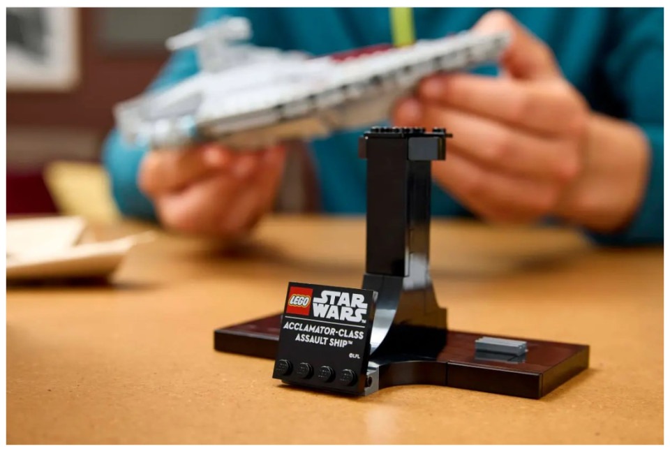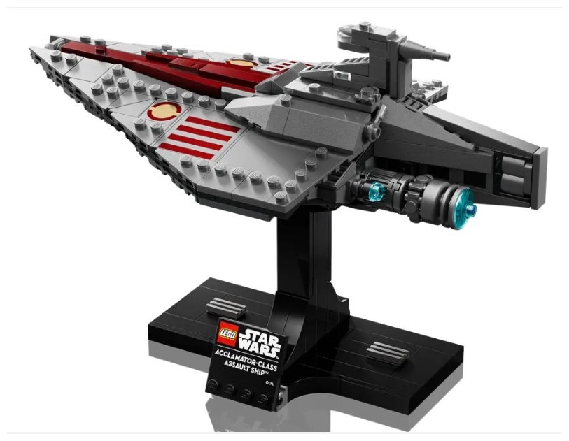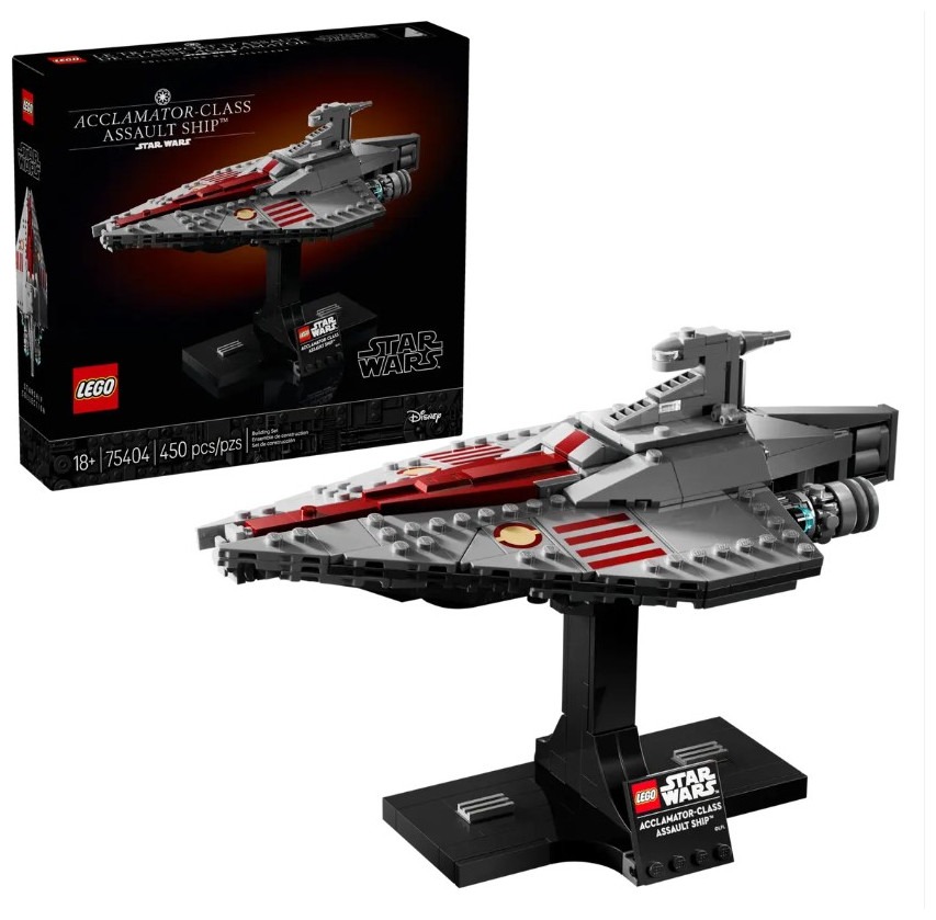Be transported to the drama of the Battle of Geonosis as you build the first-ever LEGO® Star Wars™ construction model of an Acclamator-Class Assault Ship (75404). This Star Wars collectible build-and-display starship model captures many authentic details of the iconic vehicle seen in Star Wars: Attack of the Clones™. Enjoy quality time immersing yourself in the complex, rewarding build, and display your creation on the stand with a nameplate. Part of the mid-scale LEGO Star Wars Starship Collection, this building set makes a great treat for yourself or a creative Star Wars gift for other adult fans and collectors. Get the most out of this fantasy model building kit with the LEGO Builder app. The app lets you zoom in and rotate a 3D version of your construction model as you build, track your progress and save all your sets in one place. Build-and-display starship model – Relive dramatic Battle of Geonosis scenes as you build a mid-scale LEGO® Star Wars™ recreation of an Acclamator-Class Assault Ship Authentically detailed Star Wars™ vehicle – Recreate iconic features of an Acclamator-Class Assault Ship as seen in Star Wars: Attack of the Clones™ Made for display – Showcase your creation on the buildable stand with a nameplate Part of the LEGO® Star Wars™ Starship Collection – This set is part of a collectible series featuring mid-scale buildable models of iconic Star Wars starships Creative Star Wars™ gift for adult fans – Treat yourself or gift this adults’ LEGO® building set to a friend with a passion for Star Wars 3D building instructions – With the LEGO® Builder app you can view a 3D digital version of this complex construction model as you build, track your progress and save sets From a galaxy far, far away to your home – LEGO® Star Wars™ collectible sets for adults are designed for people who enjoy hands-on creative projects to relax and recharge Dimensions – The buildable vehicle in this 450-piece LEGO® Star Wars™ fantasy model building kit measures over 6 in. (15 cm) high, 9 in. (23 cm) long and 5 in. (13 cm) wide