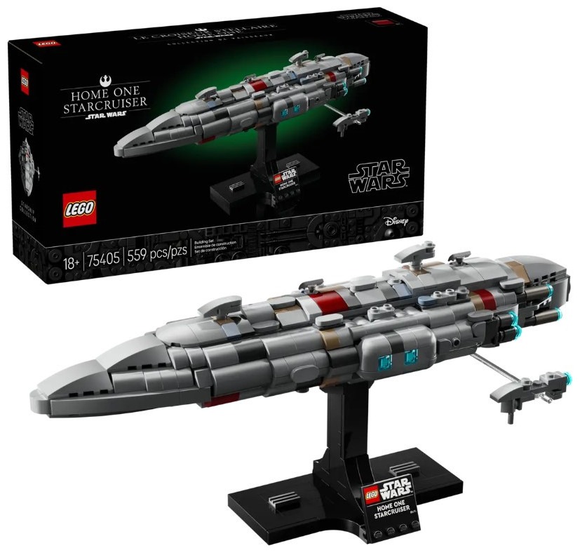 Inspire nostalgia for Star Wars: Return of the Jedi™ with the first-ever LEGO® Star Wars™ brick-built model of the Home One Starcruiser (75405) commanded by Admiral Ackbar at the Battle of Endor. A fun Star Wars gift for adults, this buildable starship model kit offers a complex, rewarding creative experience. Recreate authentic features of the Rebel Alliance fleet’s flagship frigate and display it on the buildable stand with a nameplate. The side section can be detached to view interior details, and the set also includes a small, brick-built Nebulon-B Medical Frigate that can be displayed ’flying’ alongside Home One. This collectible build-and-display set is part of the mid-scale LEGO Star Wars Starship Collection and makes impressive room decor in any Star Wars fan’s home. Get the most out of this fantasy vehicle building set with the LEGO Builder app, which lets you zoom in and rotate a 3D version of your construction model as you build and more. Buildable starship model kit – Imagine life with the Mon Calamari on board the Home One Starcruiser with the first-ever LEGO® brick recreation of this starship from Star Wars: Return of the Jedi™ Collectible build-and-display set – Recreate iconic features of the frigate commanded by Admiral Ackbar during the Battle of Endor and detach a side section to view interior details Create a Star Wars™ display – Showcase your creation on the stand with a nameplate, and use the transparent element to attach a brick-built Nebulon-B Medical Frigate as if it’s flying alongside Part of the LEGO® Star Wars™ Starship Collection – This fantasy vehicle building set is part of a collectible series featuring mid-scale buildable models of iconic Star Wars starships Creative Star Wars™ gift for adult fans – Treat yourself or gift this adults’ LEGO® building set to a friend who loves Star Wars A helping hand – Enjoy an intuitive building experience with the LEGO® Builder app where you can view a 3D digital version of this construction model as you build, track your progress and save sets From a galaxy far, far away to your living room – LEGO® Star Wars™ collectible sets for adults are designed for people who enjoy hands-on creative projects to relax in mindful and fun way Dimensions – The starship in this 559-piece LEGO® buildable vehicle model kit measures over 5.5 in. (14 cm) high, 13 in. (33 cm) long and 5.5 in. (14 cm) wide