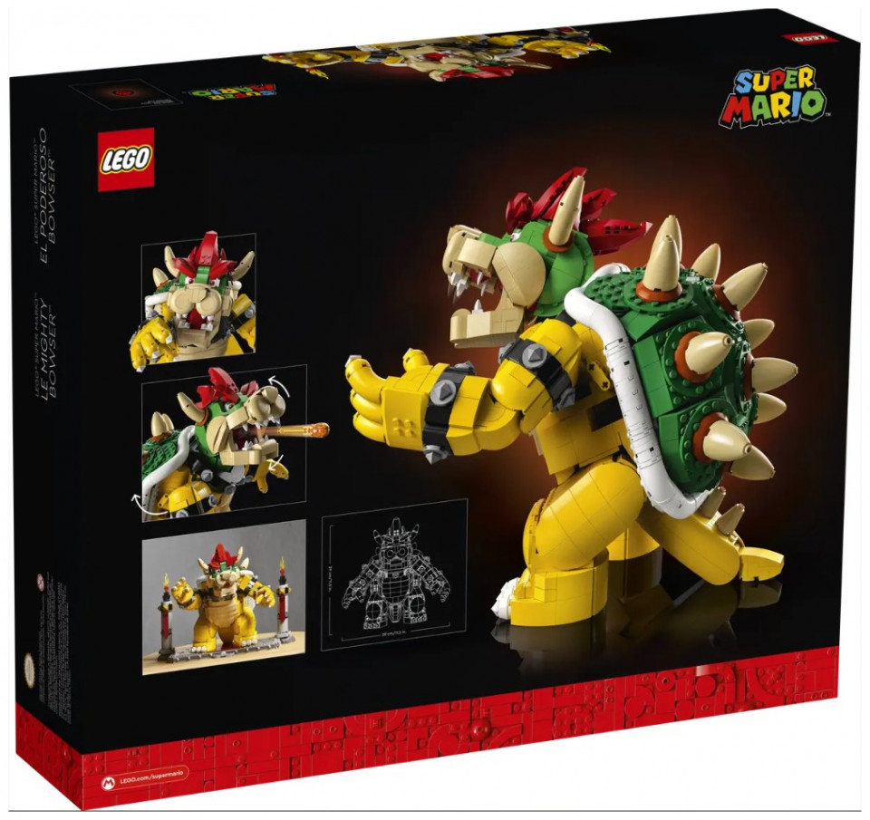 Appreciate the king of the Koopas when you build, display and play with LEGO® Super Mario™ The Mighty Bowser™ (71411). This buildable figure uses new-for-October-2022 LEGO elements to recreate the look of Bowser’s spikes and has many features, including a fireball launcher and a button to control Bowser’s head and neck movements. His arms and fingers move too! Interactive playDisplay The Mighty Bowser on the brick-built battle platform, which has 2 towers for him to knock over, a hidden POW Block and an Action Tag. Combine The Mighty Bowser and the platform with a LEGO Super Mario Starter Course (71360, 71387 or 71403 – sold separately) for battles with LEGO® Mario™, LEGO® Luigi™ or LEGO® Peach™. A great gift for any Super Mario™ fan and fun for all the family, this set includes step-by-step instructions to guide the complex build. Welcome to your zoneLook out for other LEGO Sets for Adults in the collection. Whatever your passion, there is an inspiring building project waiting for you. Buildable model of Bowser for display and play – Celebrate the ultimate Super Mario™ boss with this detailed LEGO® brick-built The Mighty Bowser™ (71411) figure for display and play Create different poses – Control Bowser’s head and neck with a button under the shell, open and close the mouth, pose the arms, hands, legs and tail and activate the fireball launcher Battle platform with a POW Block and 2 towers – The platform has a hidden POW Block for enhanced play with Starter Courses (sold separately) and 2 towers that are designed to be knocked over by Bowser The Mighty Bowser™ display piece – This LEGO® Super Mario™ character model, including the display stand, measures over 12.5 in. (32 cm) high, 16 in. (41 cm) wide and 11 in. (28 cm) deep Interactive play – Stomp on the battle platform’s Action Tag with LEGO® Mario™, LEGO® Luigi™ or LEGO® Peach™ (figures not included) for battles with The Mighty Bowser™ Gift idea for fans – This 2,807-piece LEGO® building set makes a fun birthday present, holiday gift or special treat for Super Mario™ fans. Step-by-step guide – Clear, illustrated instructions are included, so even LEGO® Super Mario™ fans who are newcomers to LEGO sets can approach the complex build with confidence LEGO® Super Mario™ collectible – This building kit is part of a collection of inspirational LEGO Sets for Adults who enjoy spending quality time immersed in mindful, fun, creative activities Quality assurance – LEGO® components comply with rigorous industry quality standards, meaning that they connect simply and securely for robust builds Safety first – LEGO® building bricks and pieces are tested in almost every way imaginable to make sure that they meet demanding global safety standards
