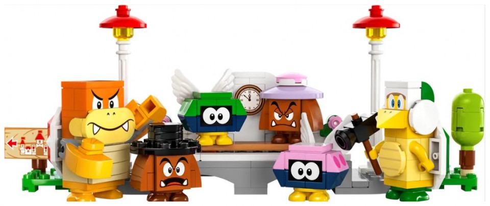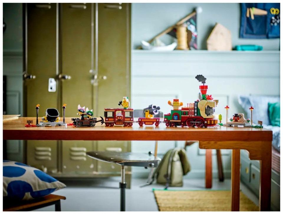 Let the action-packed rides begin with this LEGO® Super Mario™ The Bowser Express Train toy set (71437). A great Nintendo® gift for boys, girls and any gamers aged 9+, this kids’ adventure playset includes a detailed train, a handcar, 2 stations, a Super Star Block, ? Block and 6 LEGO Super Mario toy figures – a Hammer Bro, Boom Boom, 2 Goombas and 2 Para-Biddybuds. Add a LEGO® Mario™, LEGO® Luigi™ or LEGO® Peach™ figure (not included) for interactive play. Help them to chase the train in the handcar, operate the spinning platform on the locomotive and activate the cannon wagon’s spring-loaded shooter. Once all the enemies are defeated, trigger horn sounds as they drive Bowser’s Express to the station. Find building instructions in the box or on the LEGO Super Mario app, which also offers creative ideas for ways to build and play with this Nintendo collectible set. The Bowser Express Train toy for kids – All aboard for role-play fun and more with this LEGO® Super Mario™ playset, featuring a detailed train, 2 train stations and a handcar Adventure playset featuring 6 LEGO® Super Mario™ toy figures – A Hammer Bro, Boom Boom, 2 Goombas and 2 Para-Biddybuds Fun features – A train locomotive with a lever-operated spinning platform and Super Star Block, passenger wagon with a removable roof and ? Block, and a cannon wagon with a spring-loaded shooter Interactive digital play – Help LEGO® Mario™, LEGO® Luigi™ or LEGO® Peach™ (figures not included) chase the train in the handcar, defeat all enemies and drive the train to the station The companion LEGO® Super Mario™ app – Download the app for building instructions, inspiring tips and more; for a list of compatible Android and iOS devices, visit LEGO.com/devicecheck Spark children’s imaginations – LEGO® Super Mario™ playsets are designed for solo or social play, offering role play, digital coin-collecting and fun challenges through expansion and rebuilding Measurements – The Bowser toy train in this 1,392-piece set measures over 8.5 in. (22 cm) high, 26.5 in. (68 cm) long and 4.5 in. (12 cm) wide, and it can be used with other LEGO® Super Mario™ sets