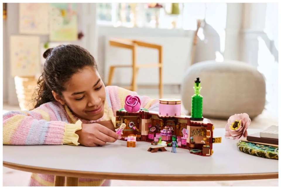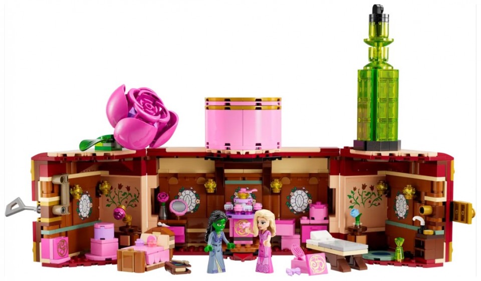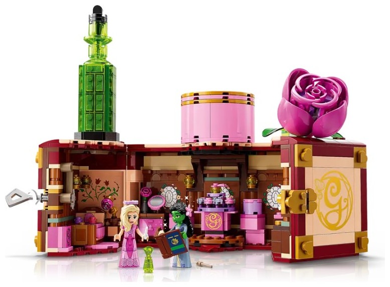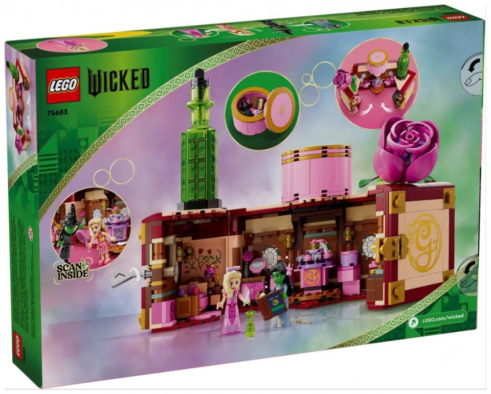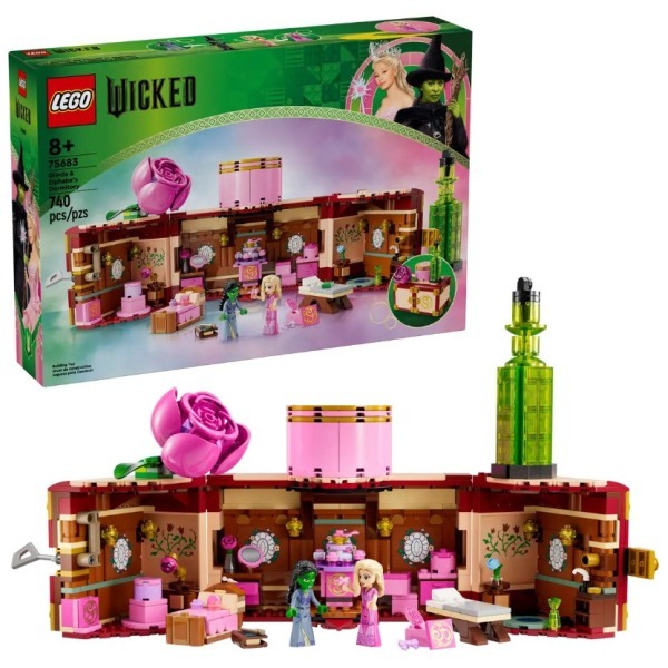 Transport girls and boys aged 8 plus to a beloved scene from the Wicked film with this Glinda & Elphaba’s Dormitory (75683) best-friend gift for kids. This collectible toy recreates the iconic scene from the film where the girls’ friendship blossoms. This model toy consists of a beautiful buildable trunk that opens out into a detailed doll’s house playset of the girls’ bedroom at Shiz University. Brimming with authentic accessories, this toy doll’s house playset lets kids recreate the scene where Glinda pledges to make Elphaba ‘popular’. Just like in the film, the 2 mini-dolls wear pyjamas, but there are also 2 daytime outfits for extra dress-up fun. Kids scan the set’s hidden QR code to access unique LEGO® Wicked content and sing along to the “Popular” hit from the film. By placing the mini-dolls on the spinning stand, kids make the characters ‘dance’ along to the music! When the play is over, close the bedroom and transform it into Glinda’s trunk, which can be locked with a key! Collectible toy for Wicked fans – Girls and boys aged 8 plus build Glinda & Elphaba’s Dormitory, then act out iconic friendship moments from the film or invent stories of their own Elphaba and Glinda mini-dolls figures – This fantasy toy includes the 2 Wicked lead characters dressed in pyjamas, just like in the scene from the film, as well as 2 daytime outfits for dress-up fun Model toy of the girls’ Shiz University dormitory – This detailed dorm room re-creation closes to form a travel case decorated with Glinda’s flower and Elphaba’s green bottle Full of features – Doll’s house toy includes wands, perfume bottles on a spinning stand, drawers and 2 of Glinda’s flowers… a buildable one to decorate the trunk and a small one for Elphaba’s hair Gift for kids who love doll’s house playsets – This LEGO® set makes a great best-friend gift for girls and boys aged 8 plus and fans of the Wicked film Spellbinding playsets – Conjure up more movie magic with other adventure playsets (sold separately) in the LEGO® Wicked range, all of which feature on the intuitive LEGO Builder app Fantasy toys for kids – This doll’s house playset let kids join Elphaba and Glinda on their adventures in the land of Oz and enjoy more unique LEGO® Wicked moments by scanning the set’s hidden QR code Dimensions – The 740-piece LEGO® Wicked set measures over 20 cm (8 in.) high, 18 cm (7 in.) wide and 11 cm (4 in.) deep when closed in display configuration