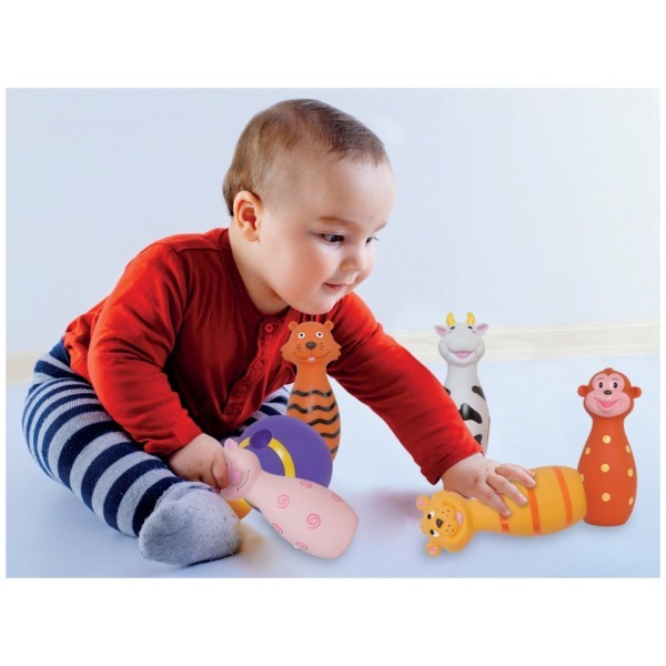 Το Strike! είναι ένα διασκεδαστικό παιχνίδι με ρίψη που θα ενθουσιάσει το παιδί σας. Αυτό το σετ μπόουλινγκ περιλαμβάνει 5 χαριτωμένα ζώα και 1 μπάλα, φτιαγμένα από μαλακό πλαστικό για ευχάριστη υφή και ελαφριά λαβή. Τα παιδιά θα απολαμβάνουν να ρίχνουν την μπάλα και να προσπαθούν να ρίξουν όσο το δυνατόν περισσότερους πίνους. Αυτό είναι ένα ιδανικό εκπαιδευτικό παιχνίδι για τα μικρά που θα τραβήξει σίγουρα την προσοχή του παιδιού σας χωρίς να ενοχλεί τους γείτονες ή να καταστρέφει τα ακριβά βάζα. Πληροφορίες προϊόντος: Κατάλληλο για παιδιά ηλικίας 10 μηνών και άνω Ύψος κώνου: 15 cm 100% PVC Μπορεί να πλυθεί με χλιαρό νερό και σαπούνι
