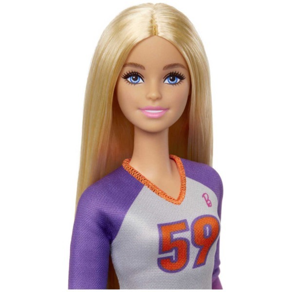 Η Barbie Αθλήτρια Βόλεϊ είναι έτοιμη να πάρει μέρος στους πιο συναρπαστικούς αγώνες! Με 22 ευλύγιστα σημεία η Barbie μπορεί να σερβίρει, να καρφώσει και να κάνει πάσα την μπάλα που περιλαμβάνεται στη συσκευασία. Φοράει στολή που αποτελείται από μπλούζα, σορτσάκι και επιγονατίδες. Η κούκλα δεν μπορεί να σταθεί όρθια από μόνη της. Τα χρώματα και τα σχέδια μπορεί να διαφέρουν.