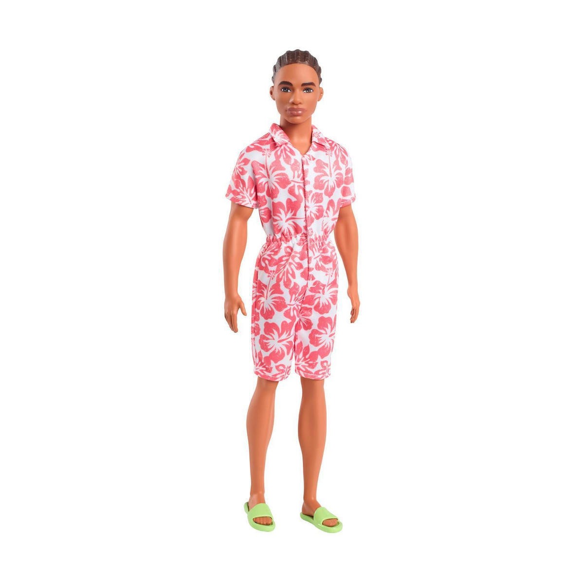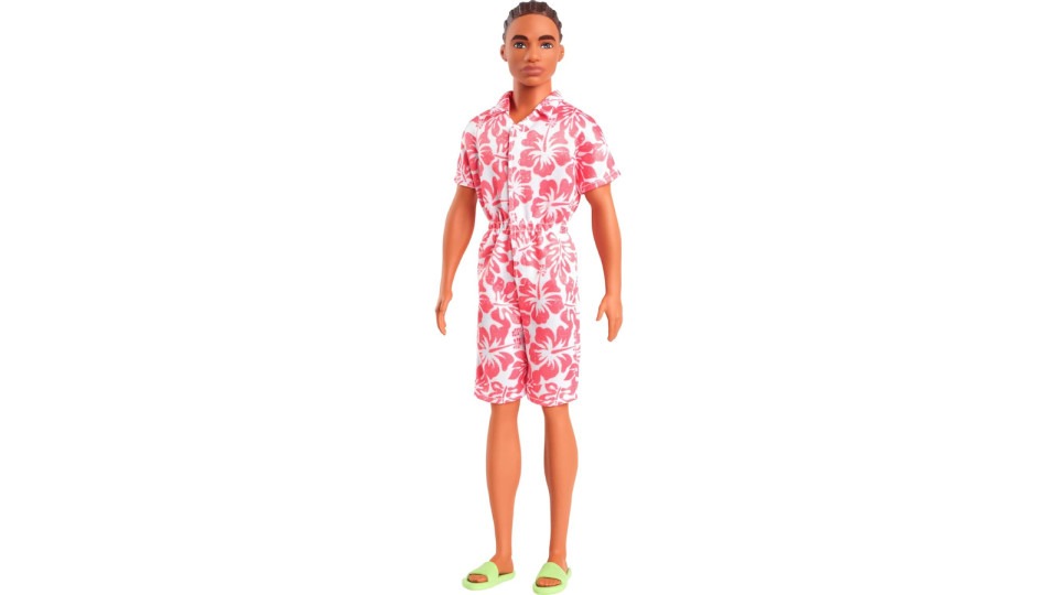 Η κούκλα Ken #235 από τη σειρά Barbie Fashionistas (HYT99) είναι μια μοντέρνα αντρική φιγούρα γεμάτη στυλ και προσωπικότητα, ιδανική για παιδιά 3 ετών και άνω. Μοντέρνος ΣχεδιασμόςΦοράει ολόσωμη φόρμα με χαβανέζικο (Hawaiian) print σε λευκό και κοραλί απόχρωση. Πλεκτά ΜαλλιάΚομψά πλεκτά μαλλιά που ολοκληρώνουν το καλοκαιρινό look. Λαμπερά ΣανδάλιαΠράσινα σανδάλια που ταιριάζουν με το casual outfit. Ρεαλιστική ΑναπαράστασηΣχεδιασμένη με αναλογίες που θυμίζουν πραγματικό Ken, για αυθεντική εμφάνιση. Υλικό Φιλικό προς το ΠεριβάλλονΚατασκευασμένη από πλαστικό με τουλάχιστον 59% φυτικής προέλευσης υλικό. Αρθρωτά ΜέληΚινούμενα χέρια και πόδια για ποικιλία στάσεων και παιχνιδιού. Κατάλληλη ΗλικίαΓια παιδιά 3+ ετών, ασφαλές παιχνίδι. Συλλεκτική ΑξίαΙδανική για συλλογή με άλλες Barbie Fashionistas. Περιεχόμενα Συσκευασίας1 κούκλα Ken Fashionistas #235