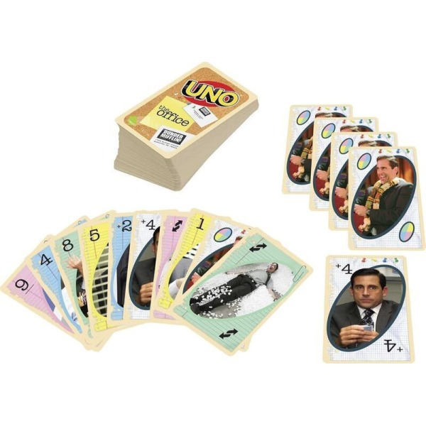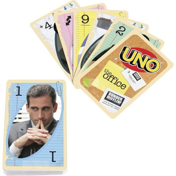 Απόλαυσε το κλασικό παιχνίδι Uno με θέμα τη δημοφιλή σειρά The Office, συνδυάζοντας στρατηγική, γέλιο και διασκέδαση για όλη την οικογένεια. Χαρακτηριστικά Κλασικό παιχνίδι καρτών Uno με ειδικά θέματα και σχέδια εμπνευσμένα από τη σειρά The Office. Κατάλληλο για παιδιά και ενήλικες. Ιδανικό για 2–10 παίκτες. Γρήγορο και εύκολο στη μάθηση παιχνίδι στρατηγικής και τύχης. Περιεχόμενα Σετ καρτών Uno The Office Οδηγίες παιχνιδιού