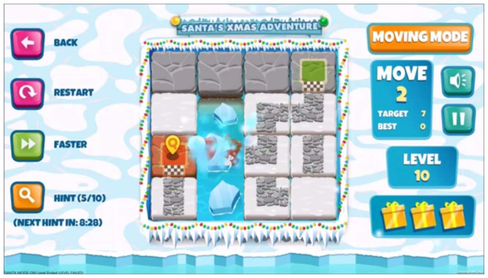 Christmas based fun for the whole family! Santa had an accident! He lost his way, and all the gifts. Help him get to his goal by sliding tiles to form a path.A classic puzzle game which is harder than it looks! 720 levels across three modes to master.Test your skills and join Santa’s adventure! When you’re stuck, use a hint. The game is accessible to players of all ages and abilities through the Hints system.Are you up for the challenge? Players:1 player