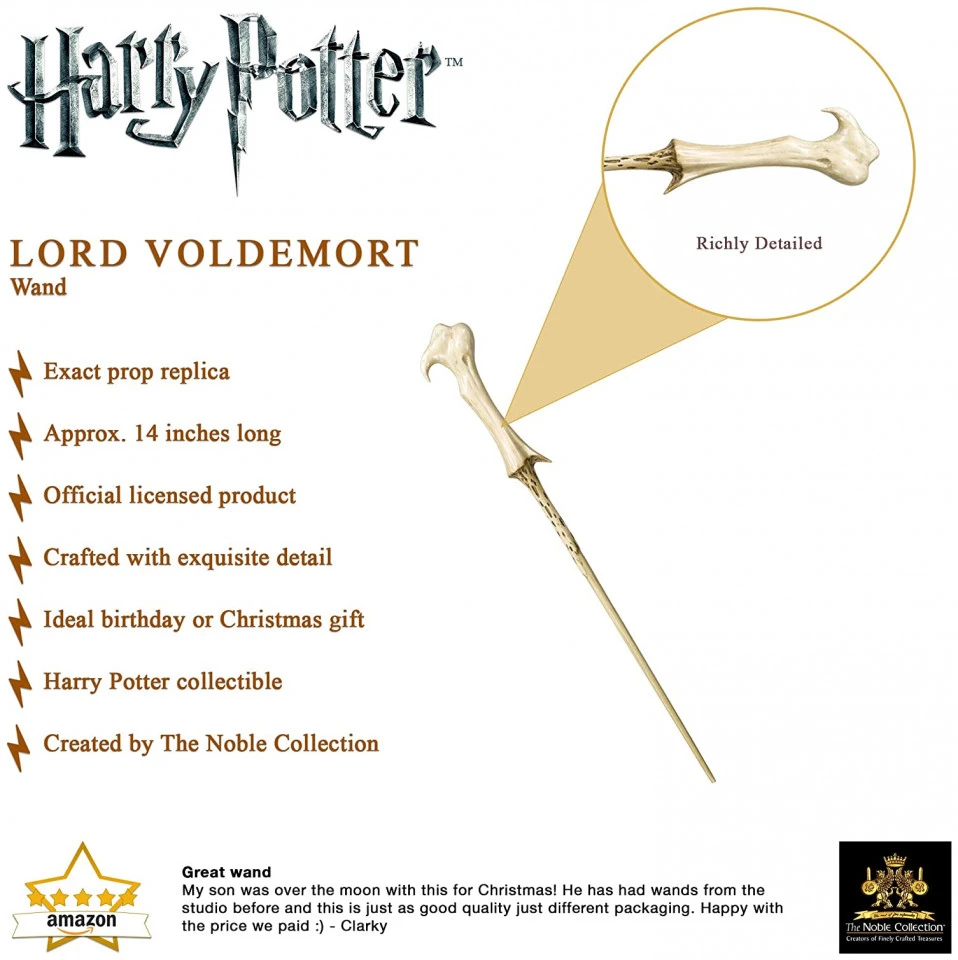 A TRUE PROP REPLICA – The Lord Voldemort wand comes in a standard window box allowing you to view your wand whilst in its packaging. This item is a meticulous recreation of the wand used by Lord Voldemort in the Harry Potter film series and is crafted with high quality materials. Each wand is hand painted to provide the most realistic experience. WAND SIZE – An authentic recreation of Lord Voldemort’s wand. Comes in a standard windowed box. The wand inside is identical to the Collector’s version but without the Collector’s box. This exact 1:1 replica measures approx. 15in (37cm) in length. COLLECTABLE REPLICA WANDS – These collectable wands are in character labelled windowed boxes include the wands of Albus Dumbledore, Hermione Granger, Sirius Black, Luna Lovegood, Draco Malfoy, Severus Snape and Narcissa Malfoy. Each wand sold separately. THE PERFECT HARRY POTTER GIFTS – Our Lord Voldemort wand is the perfect gift for any Harry Potter fan. Become a wizard with our official Wizarding World wands for kids and adults.