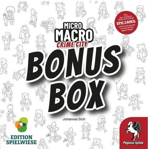 MicroMacro: Crime City – Bonus Box by Pegasus Spiele is a special expansion for the acclaimed MicroMacro series, offering a collection of new, standalone cases that expand the world of Crime City. Players once again take on the role of detectives, examining detailed black-and-white city maps, searching for clues, and solving intricate crimes. Each new case introduces fresh mysteries and challenges, enhancing the observation, logic, and teamwork elements of the game. The Bonus Box can be played with any map from the MicroMacro series, making it a perfect addition for fans who want even more detective adventures without requiring prior editions. Key Features Suitable for ages 12 and up. For 1 to 4 players. Average playtime: 15–45 minutes per case. Product code: PEG59065E. Barcode (EAN): 4250231730207. Language-independent components with English rules. Box Contents 14 new case cards with clues and questions English rulebook MicroMacro: Crime City – Bonus Box adds new layers of mystery and challenge, letting players continue their detective work and uncover hidden stories throughout Crime City!