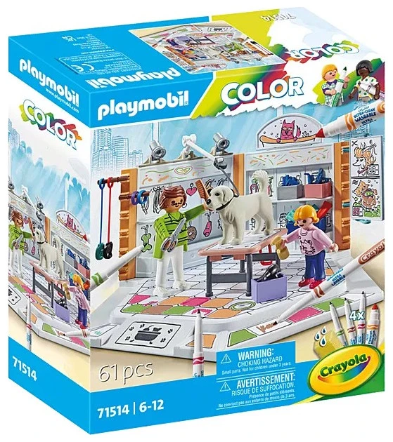 Σετ παιχνιδιού με 2 φιγούρες PLAYMOBIL, ένα σκυλάκι και τέσσερεις μαρκαδόρους, που ξεπλένονται με νερό. Αφήστε τη φαντασία σας ελεύθερη με το PLAYMOBIL Color Κομμωτήριο σκύλων! Χρωματίστε το σαλόνι, το σκυλάκι και τις ετικέτες, όσες φορές θέλετε, με τους ειδικούς μαρκαδόρους που ξεπλένονται εύκολα με νερό. Περιλαμβάνεται σφουγγάρι για διορθώσεις και πολλά αξεσουάρ. Ηλικία: Από 5 ετών και άνω