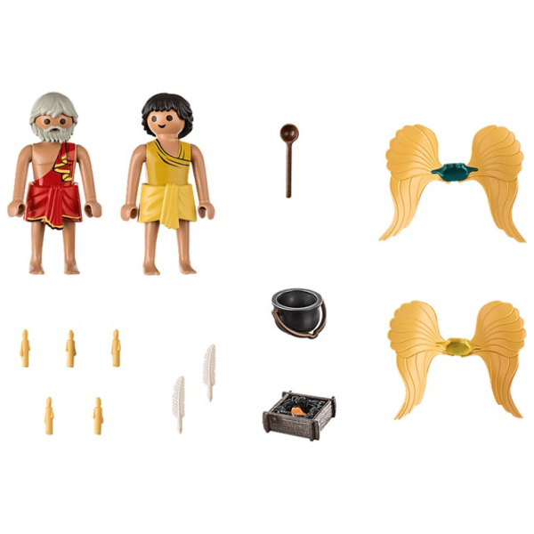 Ο Δαίδαλος και ο Ίκαρος 70471 Πατέρας και γιος καταφέρνουν να δραπετεύσουν με φτερά φτιαγμένα από κερί από το παλάτι του βασιλιά Μίνωα. Ο Ίκαρος πετάει κοντά στον ήλιο αλλά η ζέστη λιώνει τα φτερά του και χάνεται στη θάλασσα. Αυτό το προϊόν ανήκει στη σειρά PLAYMOBIL® PLUS και είναι συμπληρωματικό αξεσουάρ των κωδικών που υπάρχουν στον κανονικό κατάλογο PLAYMOBIL. Κατάλληλο για παιδιά ηλικίας 3+ ετών.