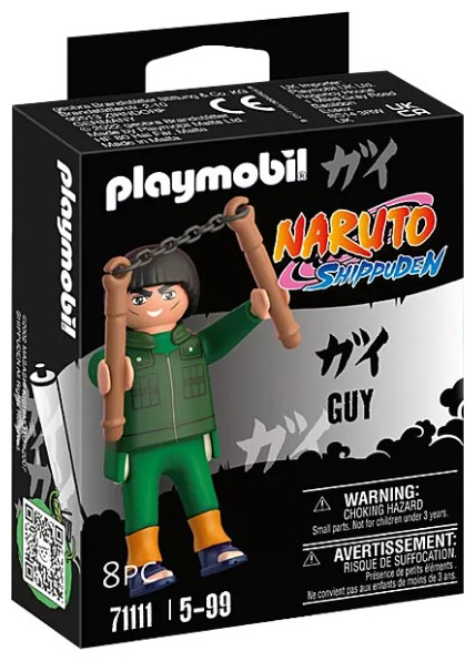 Ζει σύμφωνα με τους αυστηρούς κανόνες της κοινότητας, τους οποίους ακολουθεί πιστά και ανταγωνίζεται τον Kakashi σε κάθε ευκαιρία. Η επιτυχημένη συνεργασία της PLAYMOBIL και του NARUTO περνάει σε δεύτερη φάση. Όλοι οι λάτρεις των anime ανυπομονούν για νέους χαρακτήρες από το συναρπαστικό κόμο του NARUTO. Έτσι, οι νέες συλλεκτικές φιγούρες με αυθεντικές λεπτομέρειες και αξεουάρ από την επιτυχημένη σειρά έρχοναι να κλέψουν την παράσταση και να κερδίσουν τις εντυπώσεις των πιστών θαυμαστών των anime. Το σετ PLAYMOBIL περιλαμβάνει τον χαρακτήρα του NARUTO SHIPPUDEN Guy με την χαρακτηριστική πράσινη στολή του, πορτοκαλί γάντια και μπλε σανδάλια shinobi. Κατάλληλο για παιδιά ηλικίας 5+ ετών.