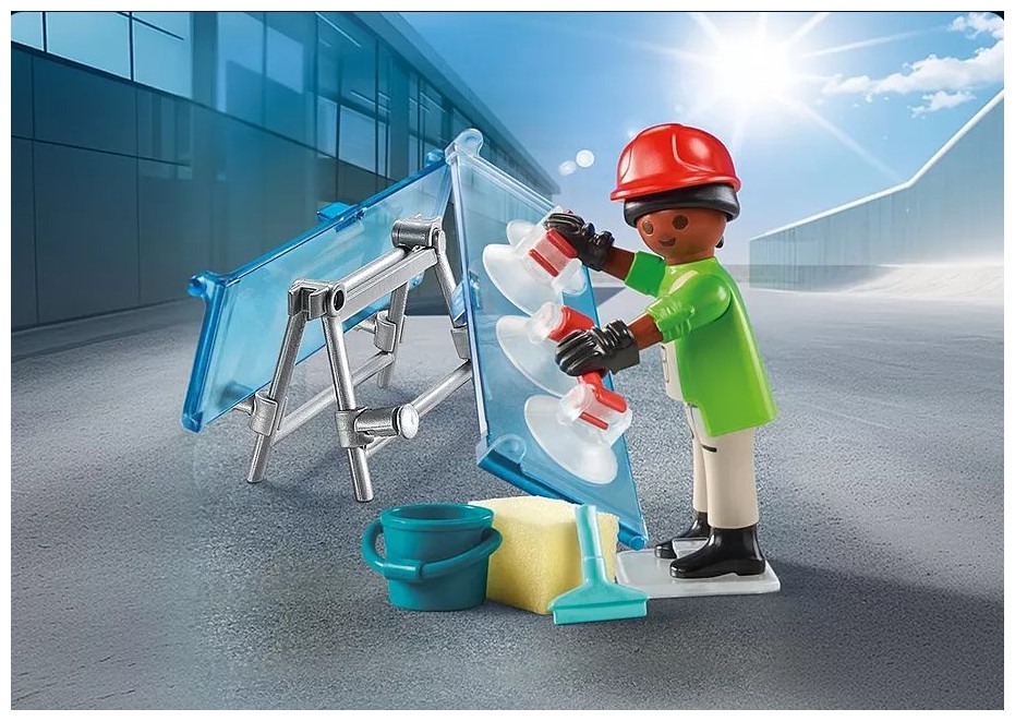 Περιλαμβάνει δύο τζάμια και βεντούζες για να λάμπουν τα παράθυρα σαν καινούρια! Ο τζαμάς μας είναι έτοιμος να κάνει κάθε παράθυρο να αστράφτει! Χρησιμοποιώντας τις λαβές με βεντούζες, μπορεί να κρατήσει με ασφάλεια τα τζάμια για ρεαλιστικό παιχνίδι. Είτε εγκαθιστώντας ένα καινούργιο παράθυρο είτε δίνοντάς του μια κρυστάλλινη λάμψη με τον κουβά, το σφουγγάρι και το ξύστρα που περιλαμβάνονται, ο υαλοπώλης φέρνει ακρίβεια και λάμψη σε κάθε έργο. Τα τζάμια μπορούν να τοποθετηθούν στη βάση, ενώ η πλατφόρμα εξασφαλίζει ότι ο γυψοποιός είναι πάντα σταθερός στην εργασία του. Για επιπλέον διασκέδαση, τα καλύμματα των γαντιών και το προστατευτικό κεφάλι μπορούν να αφαιρεθούν. Ιδανικό για δημιουργικά μυαλά, αυτό το σετ εγγυάται ατέλειωτες ώρες φανταστικού παιχνιδιού! Ηλικία: Από 4 ετών και άνω
