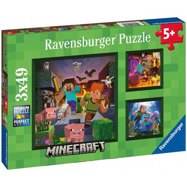 Ravensburger 05621 Παζλ 3×49 τεμ. Minecraft Biomes