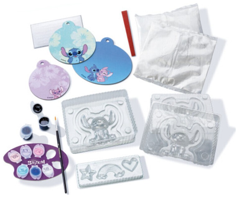 Φτιάξε τον Stitch και την Angel με γύψο! Περιλαμβάνει υλικά για 3D Φιγούρες και μικρά διακοσμητικά, που μπορούν να ζωγραφιστούν μετά την κατασκευή. Ένα πλήρες σετ για δημιουργική διασκέδαση!