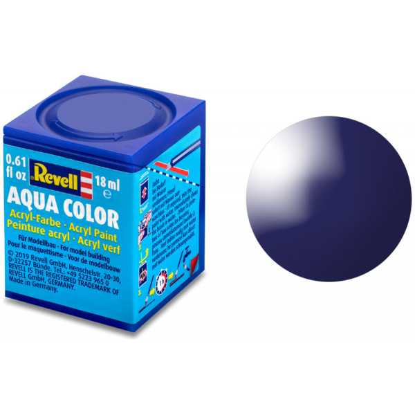 Revell Aqua Color Paint is available in night blue gloss. It is no longer necessary for the model-builder to compromise. You can rely on this acrylic paint system for all your colour requirements. Revell Aqua Color paints in completely new 18ml containers are ideal to use. The paints can be diluted with water. The paints have a mild odour. It is not inflammable. It contain practically no organic solvents and can be mixed together. The paint is totally dry after 2 to 3 hours and a coat can be over painted after just 1 hour. 6 Times faster that with Email Color enamels. These paints are also suitable for airbrushing, but the following should be noted: The paints should not be diluted too much. Dilute with maximum 20 to 25% water. The spray gun can be cleaned with water immediately after use. For use with a brush: The paints can be applied with a paint brush. With a paint brush you can get a surface almost as smooth as with an Airbrush. The end result is absolutely comparable to that with Email Color enamel paints. Exceptionally good results with a paint brush.   Box Contains 1 x 18 ml Aqua Color Acrylic Paint   Not appropriate for children under the age of 10 years.
