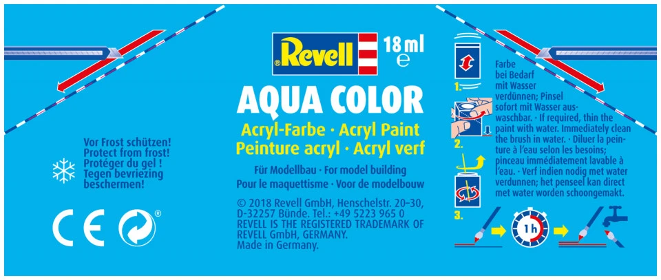 Revell Aqua Color Paint is available in leather brown mat. It is no longer necessary for the model-builder to compromise. You can rely on this acrylic paint system for all your colour requirements. Revell Aqua Color paints in completely new 18ml containers are ideal to use. The paints can be diluted with water. The paints have a mild odour. It is not inflammable. It contain practically no organic solvents and can be mixed together. The paint is totally dry after 2 to 3 hours and a coat can be over painted after just 1 hour. 6 Times faster that with Email Color enamels. These paints are also suitable for airbrushing, but the following should be noted: The paints should not be diluted too much. Dilute with maximum 20 to 25% water. The spray gun can be cleaned with water immediately after use. For use with a brush: The paints can be applied with a paint brush. With a paint brush you can get a surface almost as smooth as with an Airbrush. The end result is absolutely comparable to that with Email Color enamel paints. Exceptionally good results with a paint brush. Box Contains 1 x 18 ml Aqua Color Acrylic Paint Not appropriate for children under the age of 10 years.