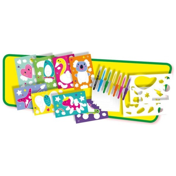 Ρίξε τα μαλλιά και χρησιμοποίησε έξι μαρκαδόρους αερογράφου για να ζωγραφίσεις χαρούμενα γκράφιτι σε εκτυπωμένες κάρτες. Οι συμπεριλαμβανόμενοι τύποι θα σε βοηθήσουν να χρωματίσεις προσεκτικά τις φιγούρες. Στη συνέχεια, μπορείς να περιγράψεις τις δημιουργίες σου με μαύρο μαρκαδόρο. Τώρα, έγιναν αληθινά έργα τέχνης γκράφιτι!