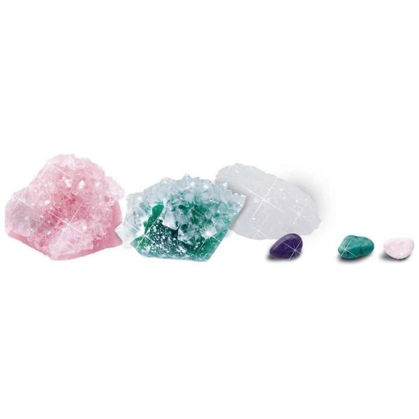 Μετατρέψτε τρεις πολύχρωμες πέτρες σε όμορφους κρυστάλλους! Ανακατέψτε τα υλικά με νερό, τοποθετήστε τις πέτρες στο μαγικό διάλυμα κρυστάλλων και παρακολουθήστε καθώς σχηματίζονται οι κρύσταλλοι. Το σετ περιέχει όλα όσα χρειάζεστε για να φτιάξετε τρεις γιγάντιους κρυστάλλους και τρεις πολύχρωμες πολύτιμες πέτρες για συλλογή. Με τη στυπτηρία μπορείτε εύκολα να καλλιεργήσετε τους δικούς σας αφρώδεις κρυστάλλους Πολύχρωμες πέτρες