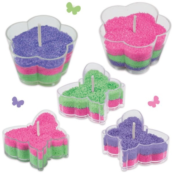 Ανακαλύψτε τη δημιουργική διασκέδαση με τα κεριά Sand Wax!Δημιουργήστε 5 μοναδικά κεριά ρίχνοντας τους χρωματιστούς κόκκους κεριού σε μωβ, πράσινο και ροζ χρώμα στα καλούπια σε σχήμα πεταλούδας και λουλουδιού που περιλαμβάνονται. Τοποθετήστε το φυτίλι και σχεδιάστε όμορφα κεριά που είναι ιδανικά για δώρα ή για να διακοσμήσετε το δωμάτιό σας.Το σετ περιλαμβάνει όλα όσα χρειάζεστε: 3 καλούπια σε σχήμα πεταλούδας και 2 σε σχήμα λουλουδιού, κόκκους κεριού και φυτίλια.Ιδανικά για παιδιά και ενήλικες που αγαπούν τις χειροτεχνίες και τη δημιουργικότητα! Δημιουργήστε 5 όμορφα κεριά με πολύχρωμους κόκκους κεριού άμμου. Περιλαμβάνει έντονο κερί σε ροζ, μοβ και πράσινο για δημιουργικά σχέδια. Χρησιμοποιήστε καλούπια σε σχήμα πεταλούδας και λουλουδιού για να φτιάξετε μοναδικά κεριά. Ιδανικό για να διακοσμήσετε τον χώρο σας ή να το χαρίσετε ως χειροποίητο δώρο. Ιδανικό για παιδιά και ενήλικες που απολαμβάνουν δημιουργικές και χαλαρωτικές κατασκευές